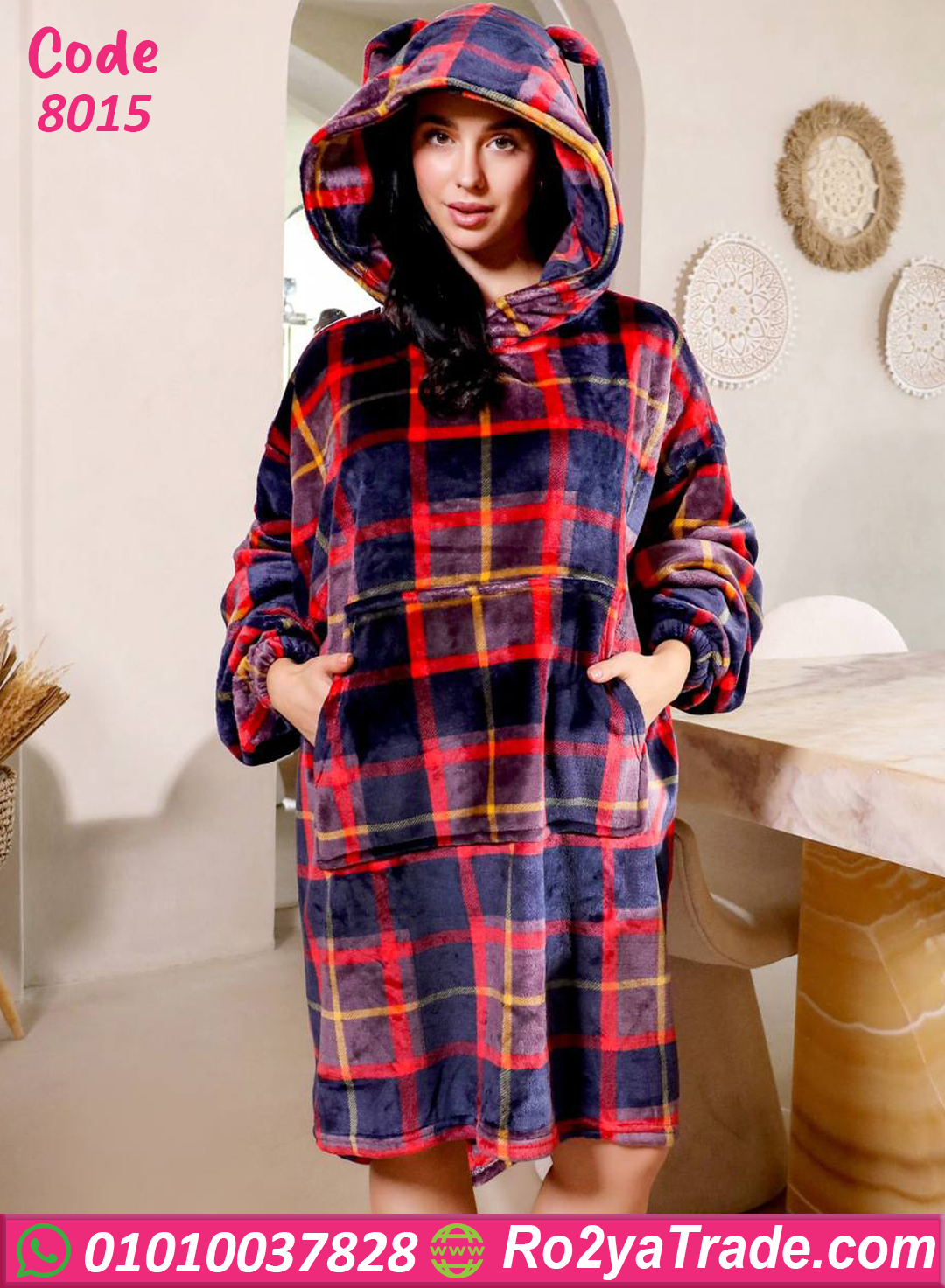 كاش مايوه بيتي شتوي قطيفة فخمة بنقشة كاروه ملونة، تصميم واسع ومريح جدا مع كابيشو بأذنين شيك