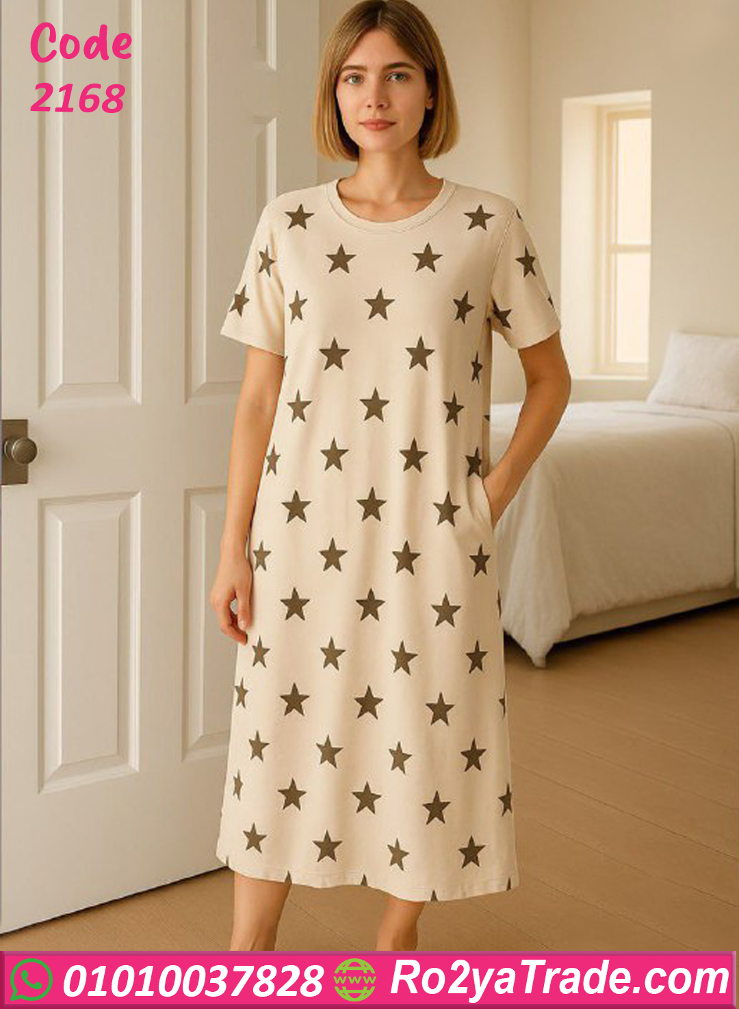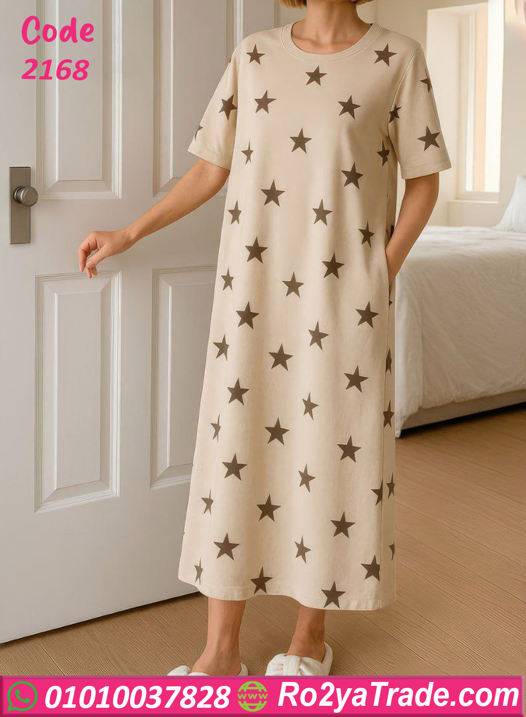 كاش مايوه صيفي واسع بخامة قطنية ناعمة ونقشة نجوم مميزة، تصميم مريح جدا للبيت والمصيف.