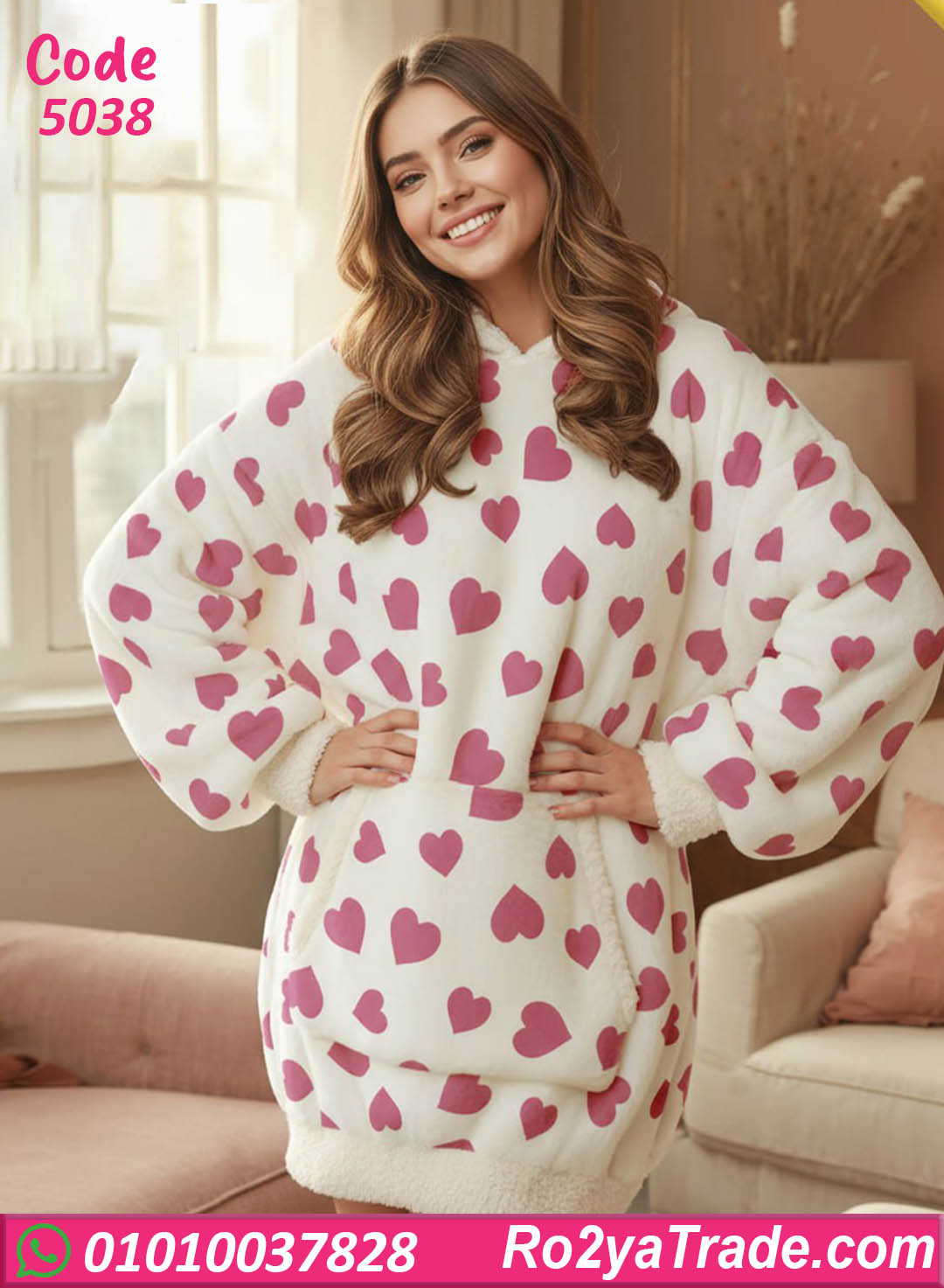 كاش مايوه بيتي شتوي خامة قطيفة ناعمة جدًا بتصميم قلوب شيك، دافي ومريح للبيت، مناسب للشتا والخروجات الخفيفة، وان سايز يناسب أغلب الأجسام