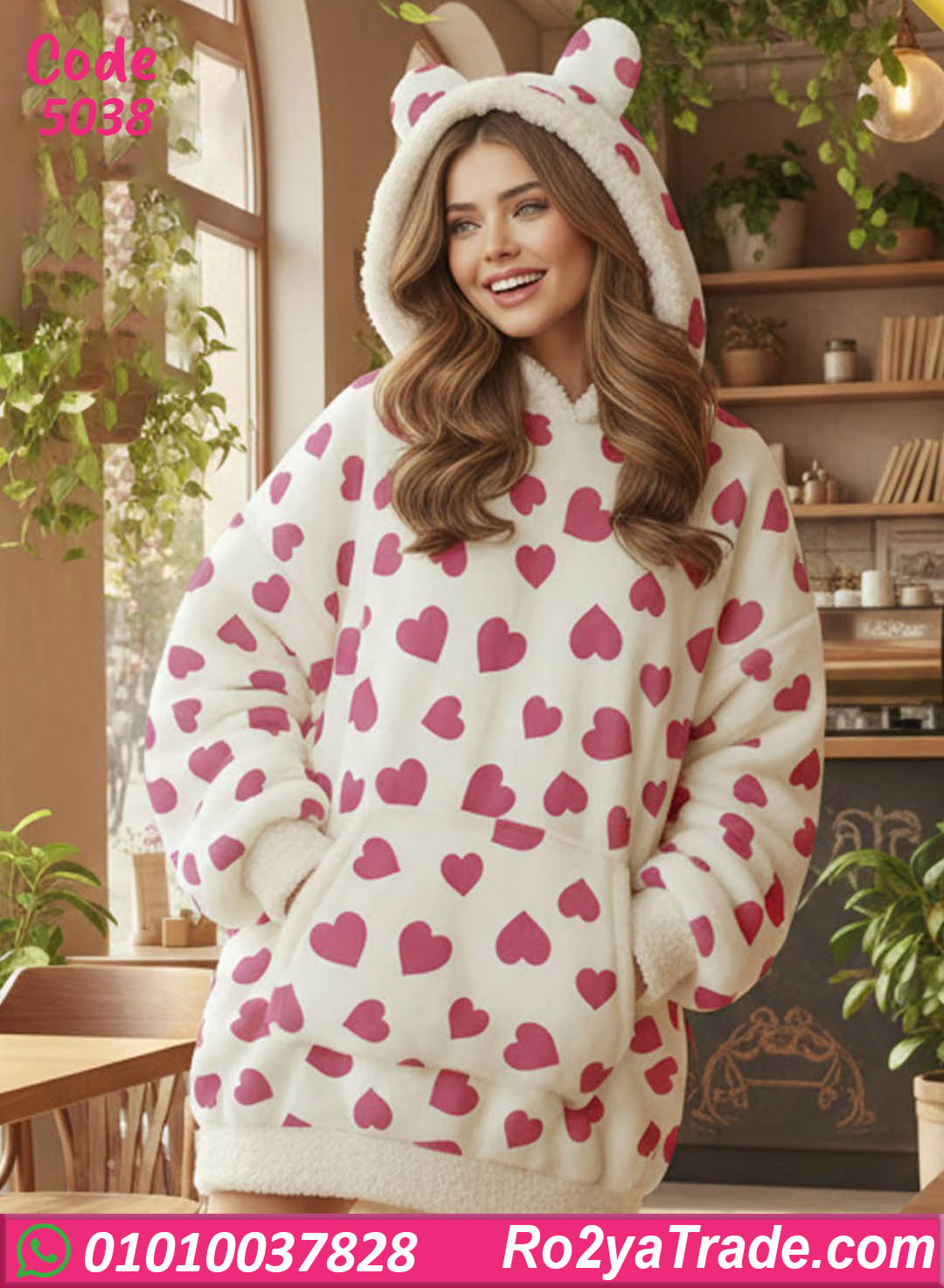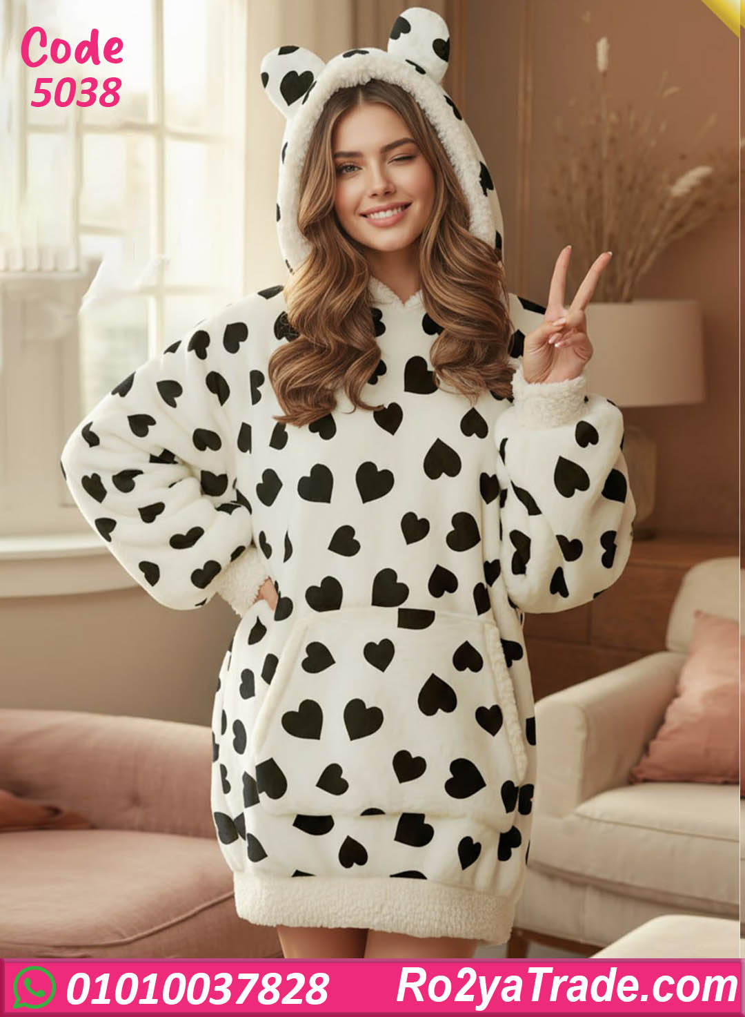 كاش مايوه حريمي شتوي خامة قطيفة تقيلة وناعمة، تصميم عملي وشيك برسمة قلوب جذابة مع هودي بآذان كيوت تضيف لمسة مميزة وعصرية. الموديل واسع ومريح جدًا في اللبس، مناسب للاستخدام البيتي، القعدة، أو فوق البيجامة في الجو البارد. الخامة دافية وبتدي إحساس بالراحة طول اليوم، اختيار مثالي للشتا وللستات اللي بتحب الستايل الكيوت مع الدفا. تشطيب ممتاز وجودة عالية تخليه عملي وسهل الاستخدام اليومي.