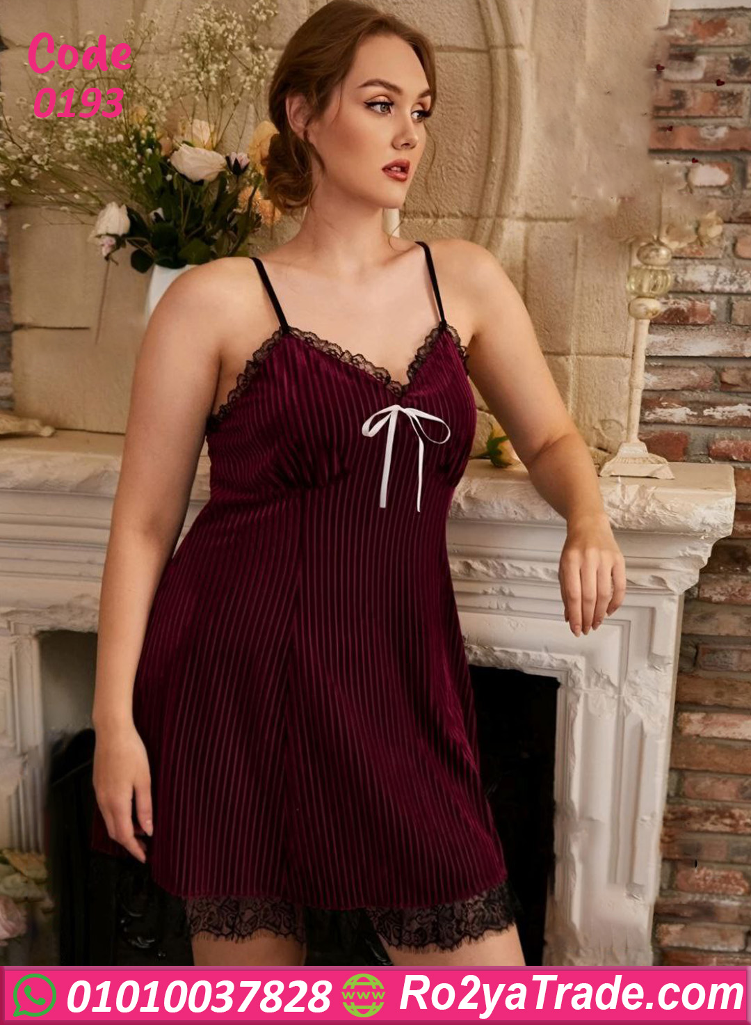 أسفل اللانجري فيه شريط دانتيل أسود بيكمل التصميم ويدي تباين جميل مع لون القماش سواء البنفسجي الجذاب أو النبيتي الأنيق. القصة واسعة شوية من تحت علشان تدي راحة في الحركة، وفي نفس الوقت تحافظ على شكل أنثوي راقي.