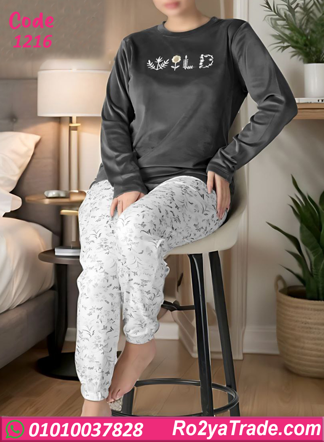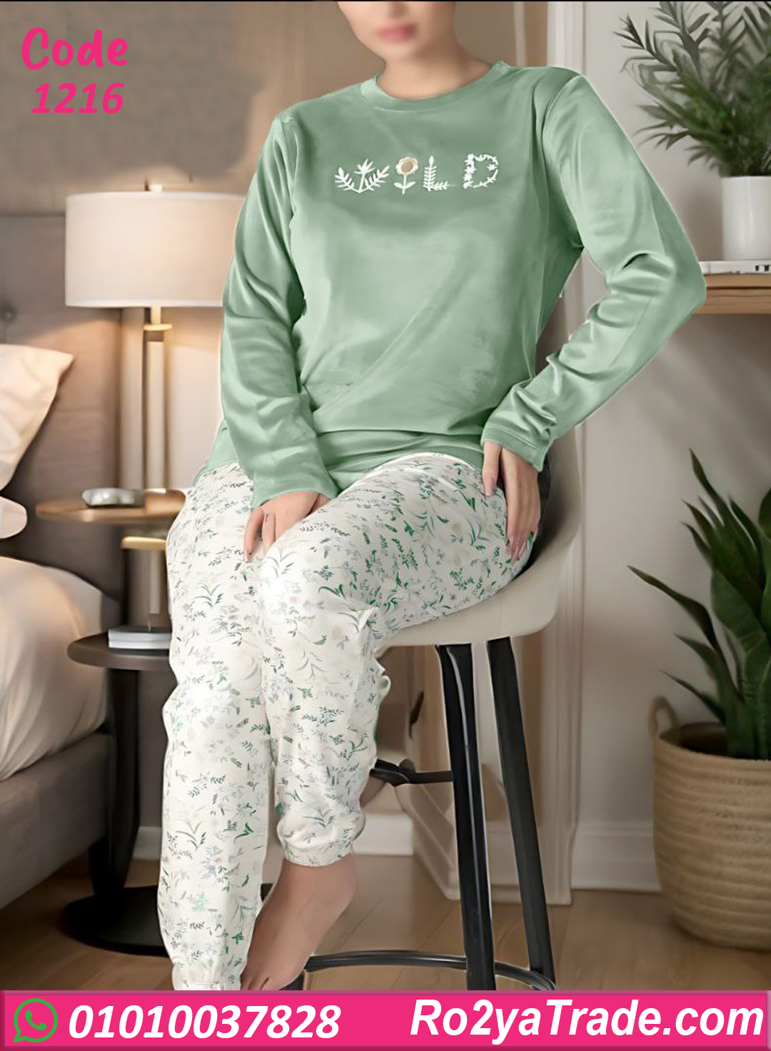 بيجامة شتوي حريمي شيك ومريحة، تصميم بسيط وأنيق مناسب للبيت واللبس اليومي، خامة ناعمة تدفي وتريح في الحركة