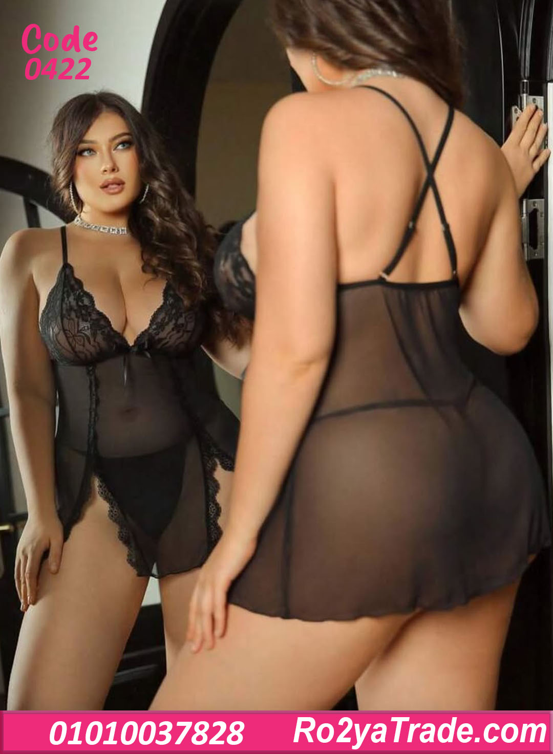 لانجري بيج سايز شيفون أسود شفاف بتفاصيل دانتيل أنثوية يخليكي في قمة الجاذبية والدلع 🖤✨
