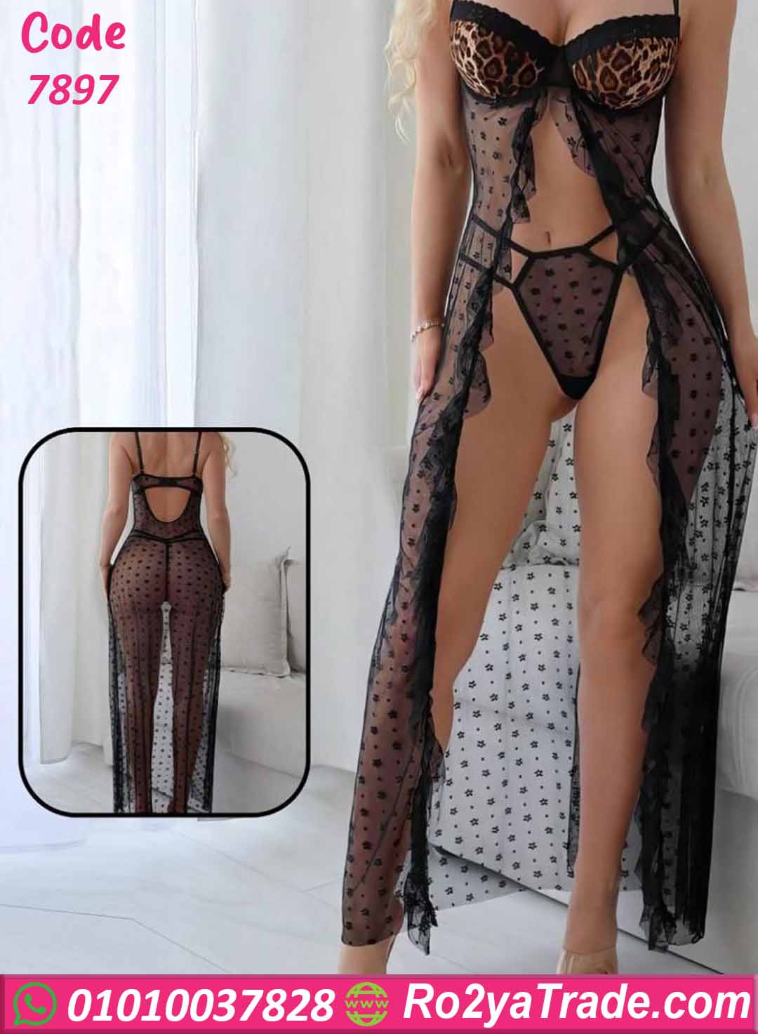 لانجري طويل تايجر هو اختيار مثالي لو بتحبي الإطلالة الجريئة المختلفة اللي تجمع بين الجرأة، الأناقة، والتفاصيل المميزة. قطعة مميزة تضيف لمسة خاصة لمجموعة اللانجري الخاصة بيكي من Ro2ya Trade.
