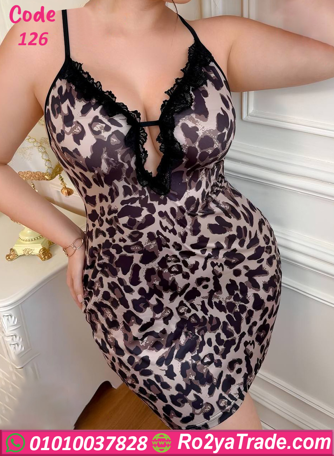 لانجري قصير كود 126 من ماركة Sexy & Curvy يجمع بين الجرأة والنعومة في تصميم واحد مميز. يأتي بطبعة تايجر جذابة تعكس شخصية قوية وواثقة، مع ياقة على شكل V مزينة بدانتيل أسود يبرز جمال التفاصيل ويمنح لمسة أنثوية راقية.