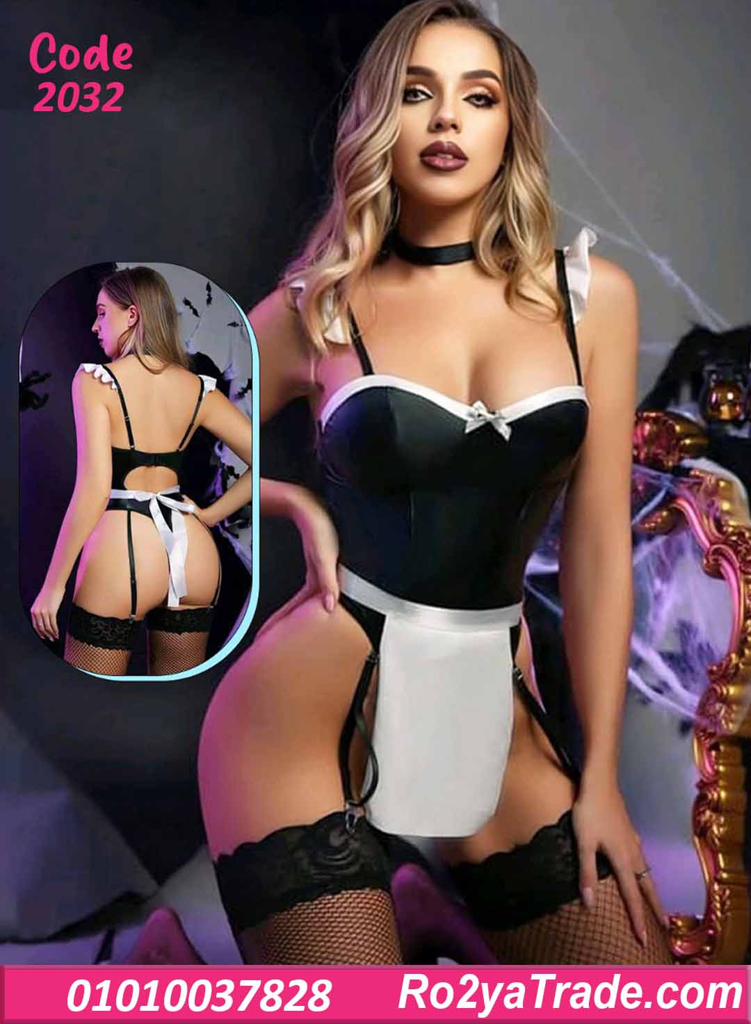 لانجري تنكري كود 2032 تصميمه أنثوي وجذاب بستايل الخادمة الكلاسيك،