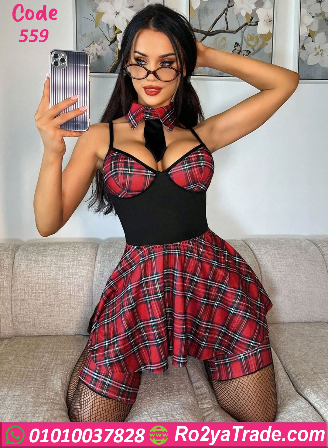 لانجري كود 559 من ماركة lady in red بتصميم تنكري عصري مستوحى من إطلالة School Girl الشهيرة، يجمع بين نقشة الكاروهات الحمراء والتفاصيل الأنيقة ليمنحك إطلالة جريئة ومميزة.