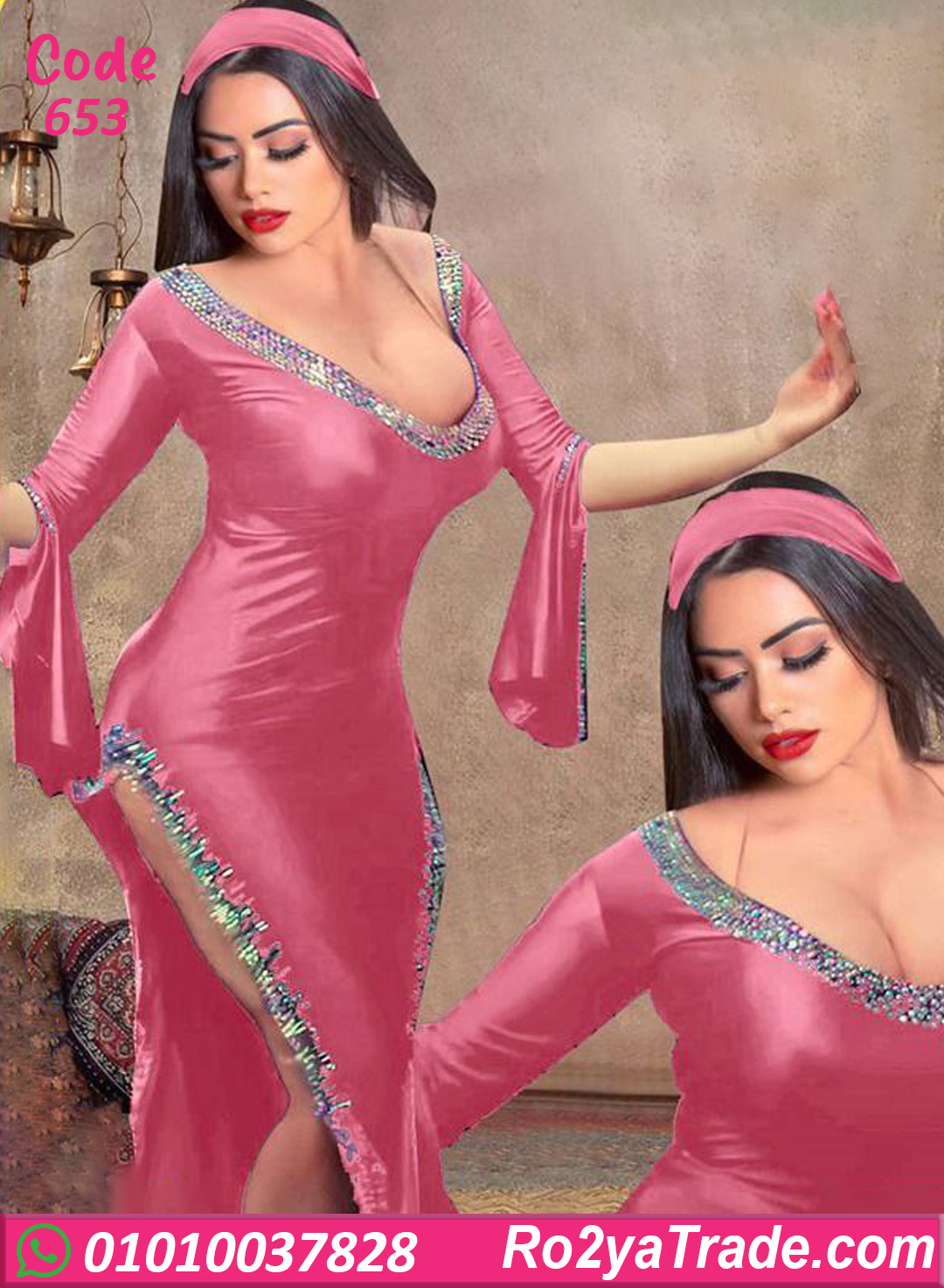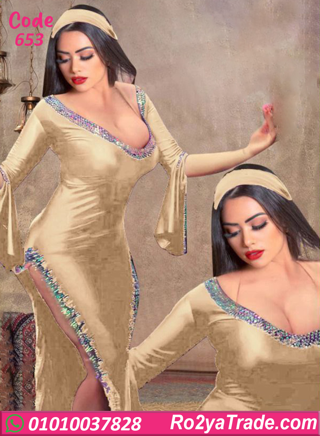 لانجري جلد طويل بخامة ناعمة ومريحة على الجسم، تصميمه بيجمع بين الجرأة والفخامة مع فتحة جانبية جذابة وتطريز لامع بيدي لمسة رقص شرقي أنيقة، مناسب للاستخدام البيتي أو للحظات الخاصة وبيضيف إحساس مختلف ومميز.