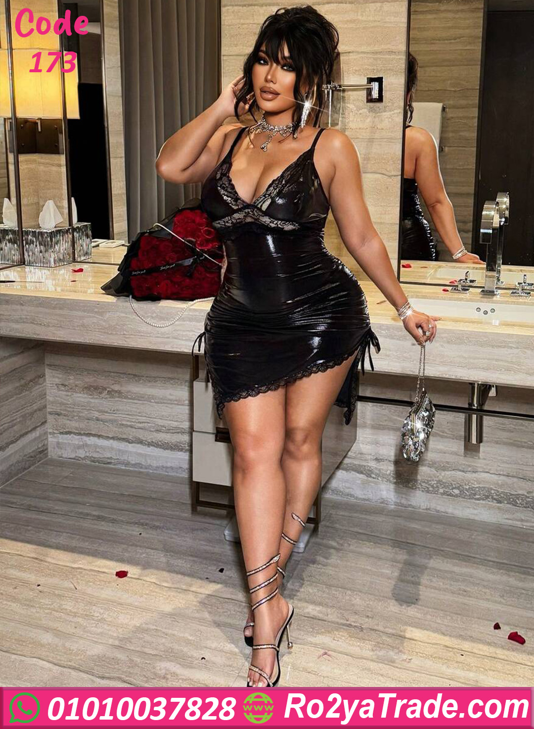 فستان لانجري قصير بخامة جلد لامع يخليكي نجمة أي سهرة 🔥✨
