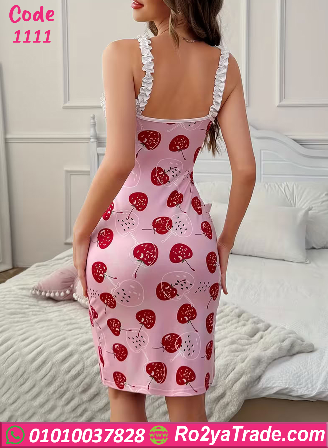 لانجري حريمي قصير بتصميم كيوت بطبعة الفراولة مع تفاصيل ناعمة تمنحك إطلالة أنثوية مميزة ومريحة.