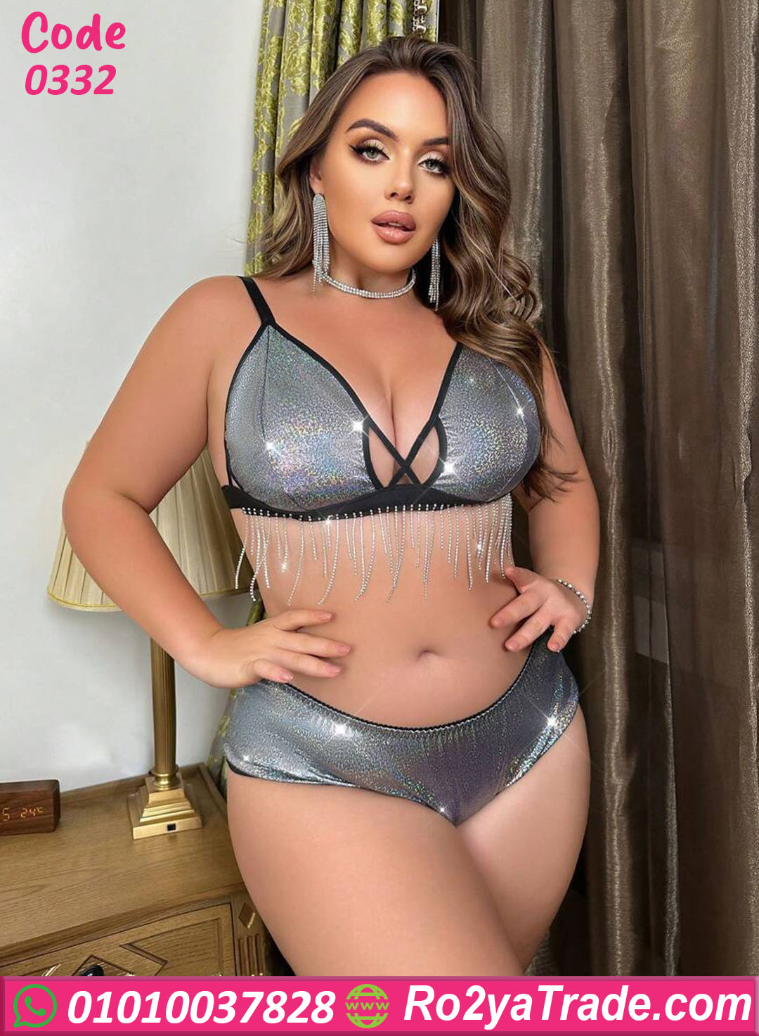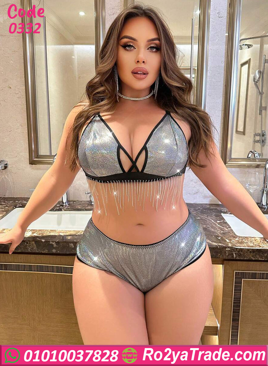 لانجري حريمي لامع بسلاسل ستراس جذابة – كود 0332
