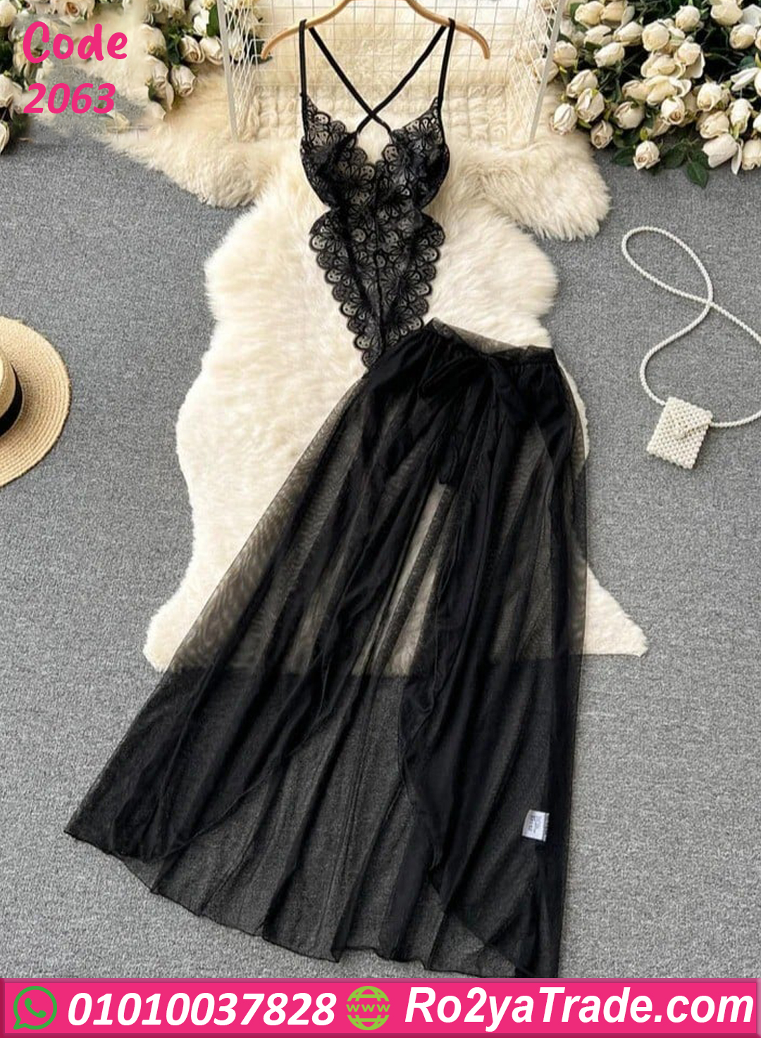 الدانتيل الراقي بياخد شكل الجسم بطريقة ناعمة ومثيرة، والتنورة الطويلة الشفافة بتديكي لمسة أنوثة وأناقة ملوكية ✨