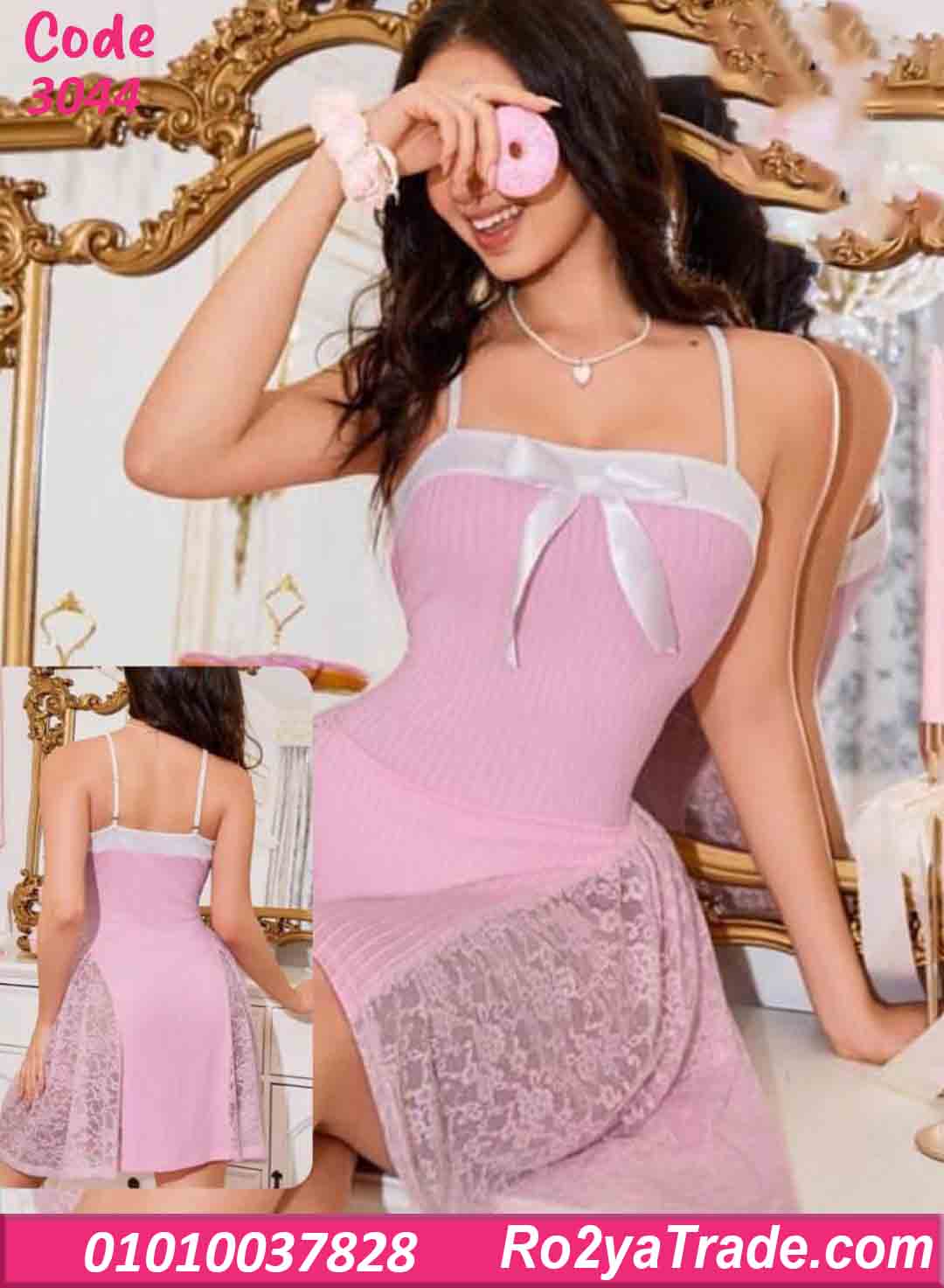 لانجري حريمي قصير بتصميم أنثوي ناعم مزين بتفاصيل دانتيل أنيقة تعطي إطلالة جذابة ورومانسية.