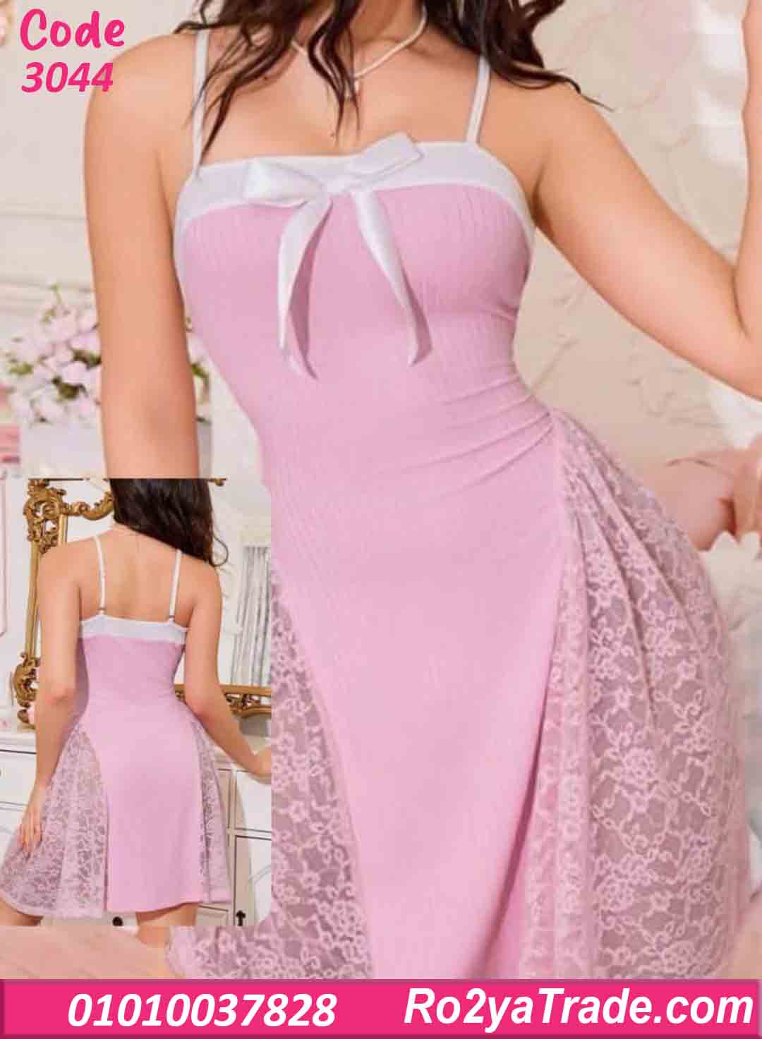 يتميز بلون وردي هادئ مع تفاصيل دانتيل رقيقة على الجانبين تضيف لمسة أنثوية جذابة. يأتي الموديل بحمالات