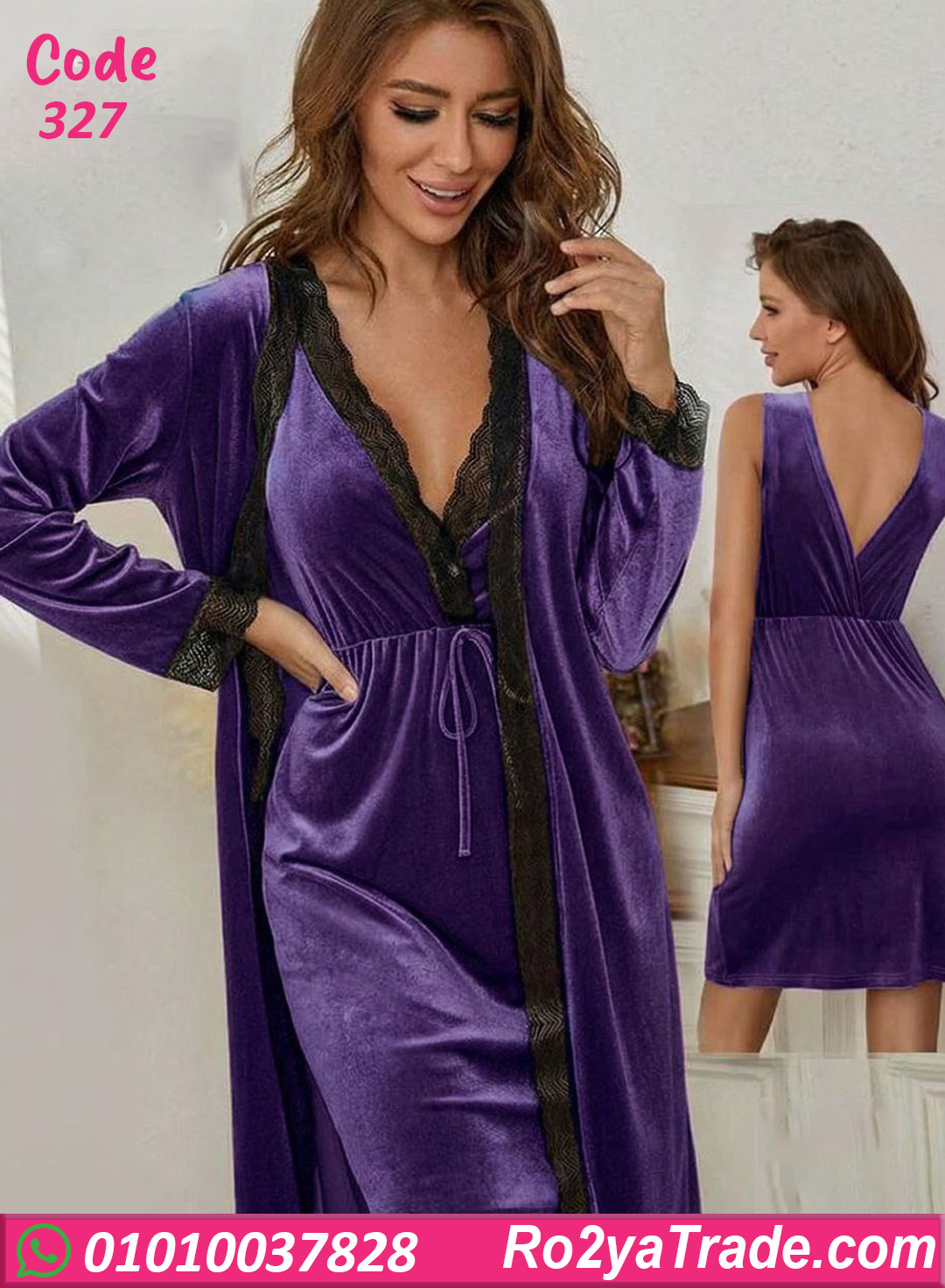 لانجري شتوي قصير مع روب بنفس الخامة، تصميم أنثوي شيك بلمسة مخمل ناعمة يدي إحساس دفا وأناقة