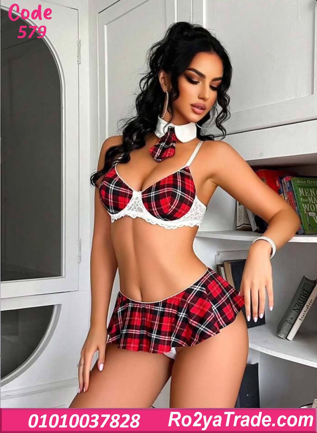 لانجري كود 579 من ماركة lady in red بتصميم تنكري عصري مستوحى من إطلالة School Girl الشهيرة، يجمع بين البرا الأنيق والجيب القصيرة بنقشة الكاروهات العصرية ليمنحك إطلالة أنثوية جذابة ومميزة.