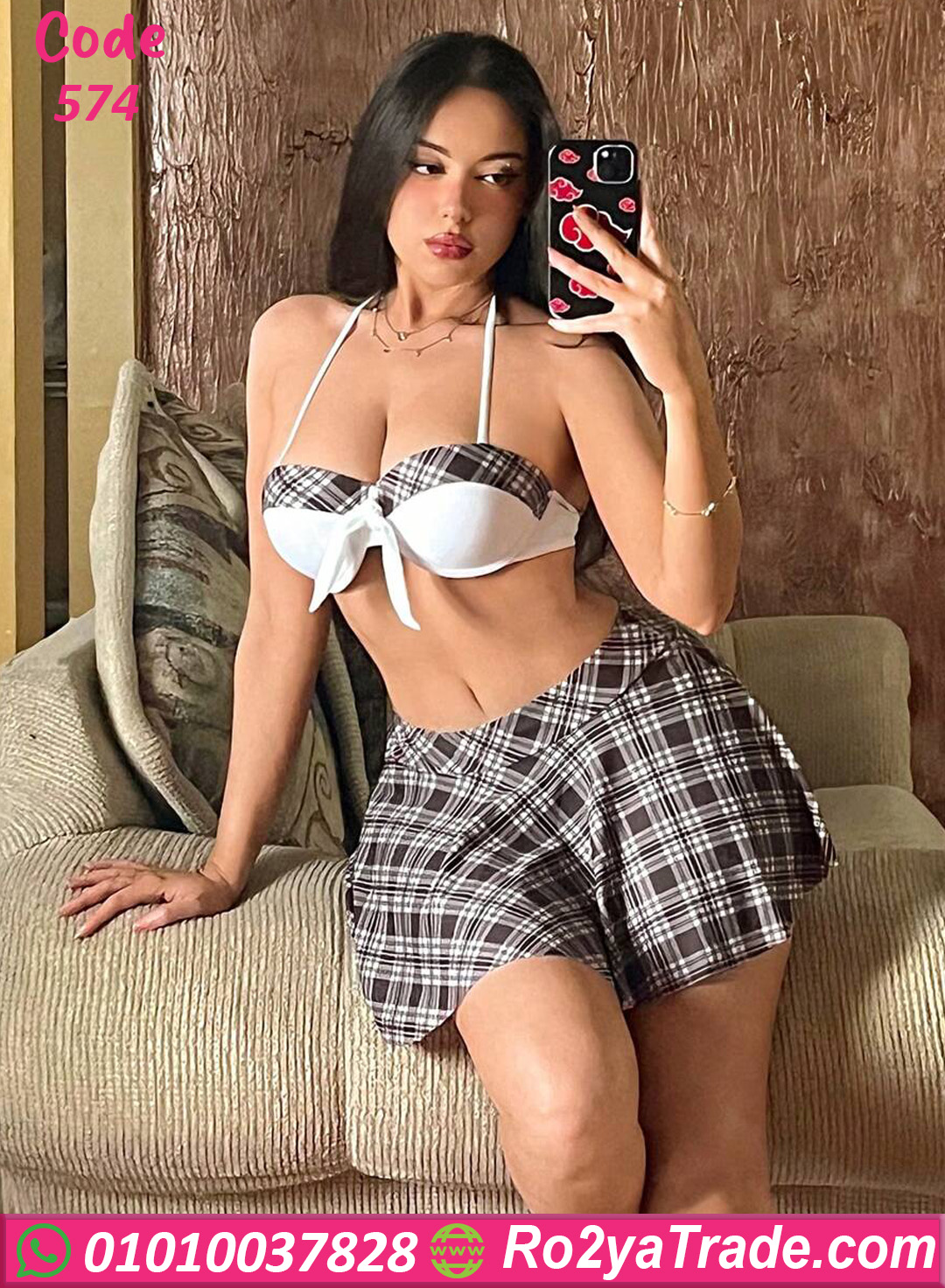 لانجري كود 574 من ماركة lady in red بتصميم تنكري عصري مستوحى من إطلالة School Girl الشهيرة، يجمع بين البرا الأنيق والجيب القصيرة بنقشة الكاروهات ليمنحك إطلالة أنثوية جذابة ومميزة.