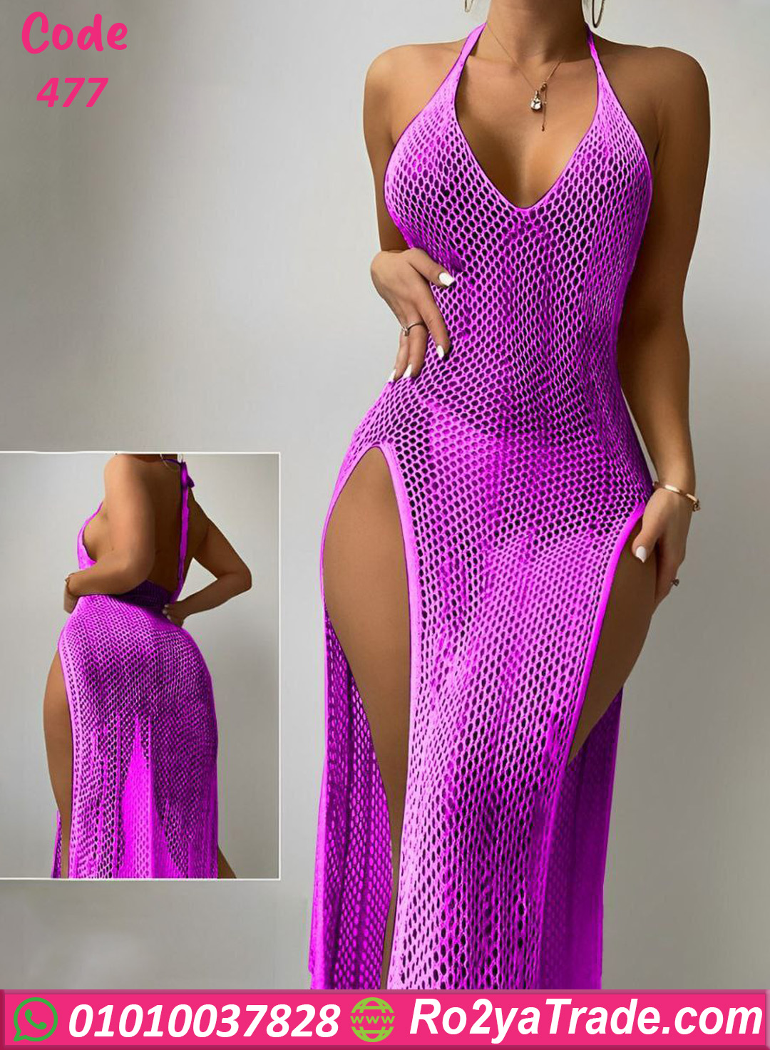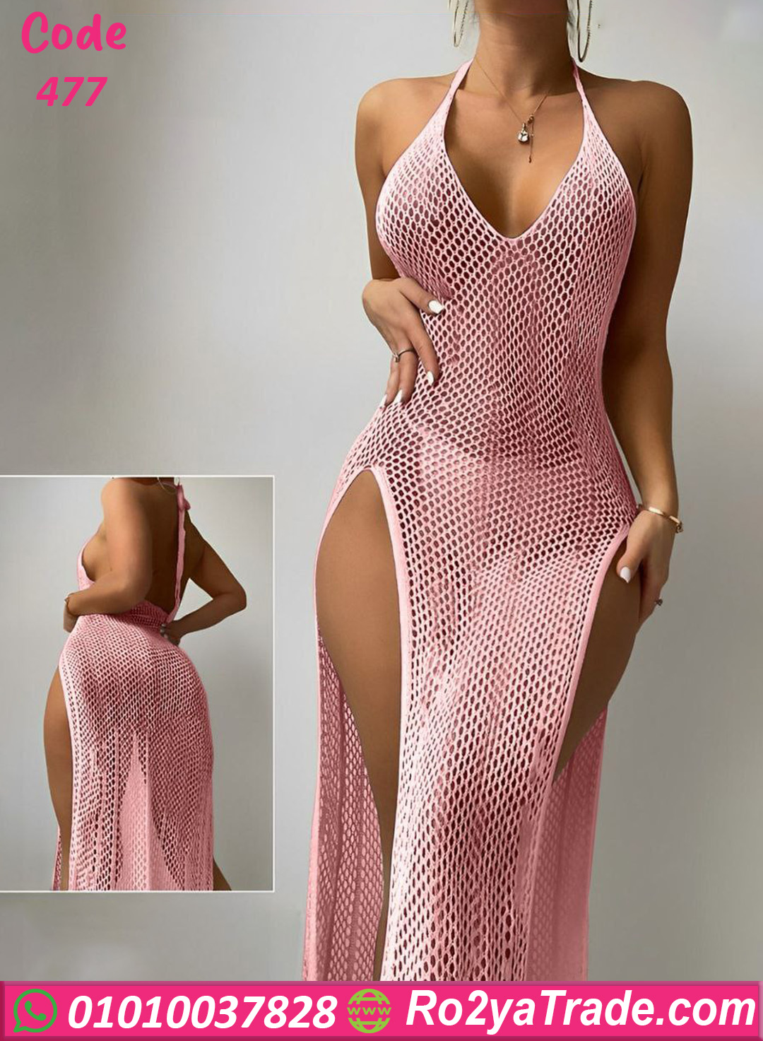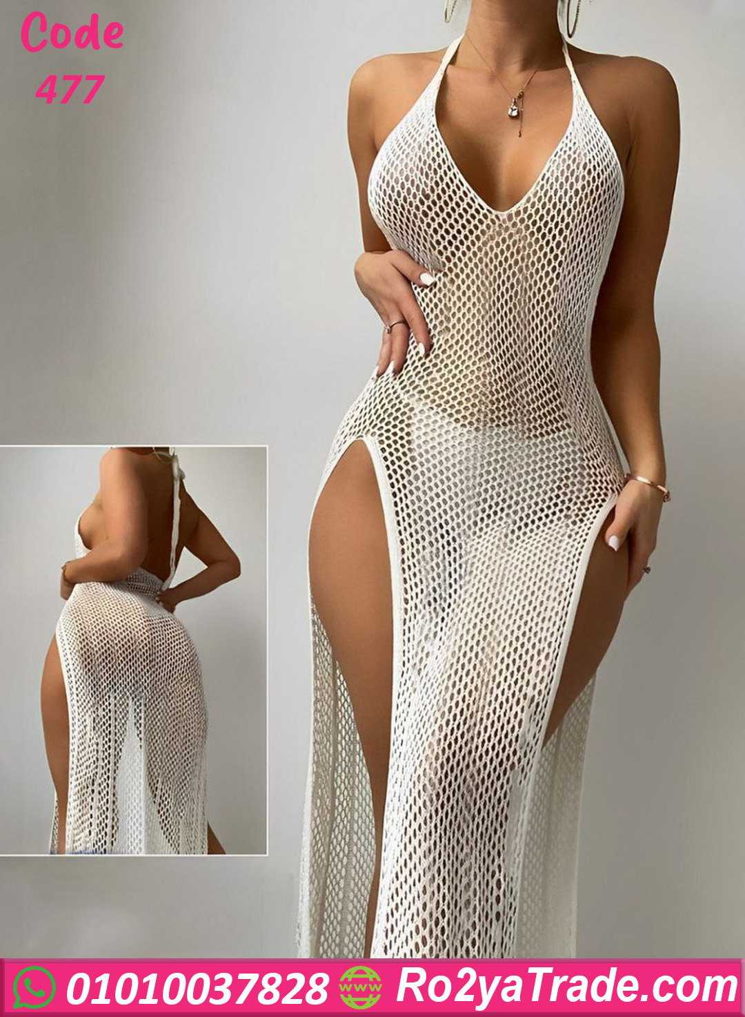 لانجري حريمي شبك بتصميم جذاب وأنثوي مميز، يتميز بقصة طويلة مع فتحات جانبية جريئة تضيف لمسة من الأناقة والإثارة لإطلالتك.