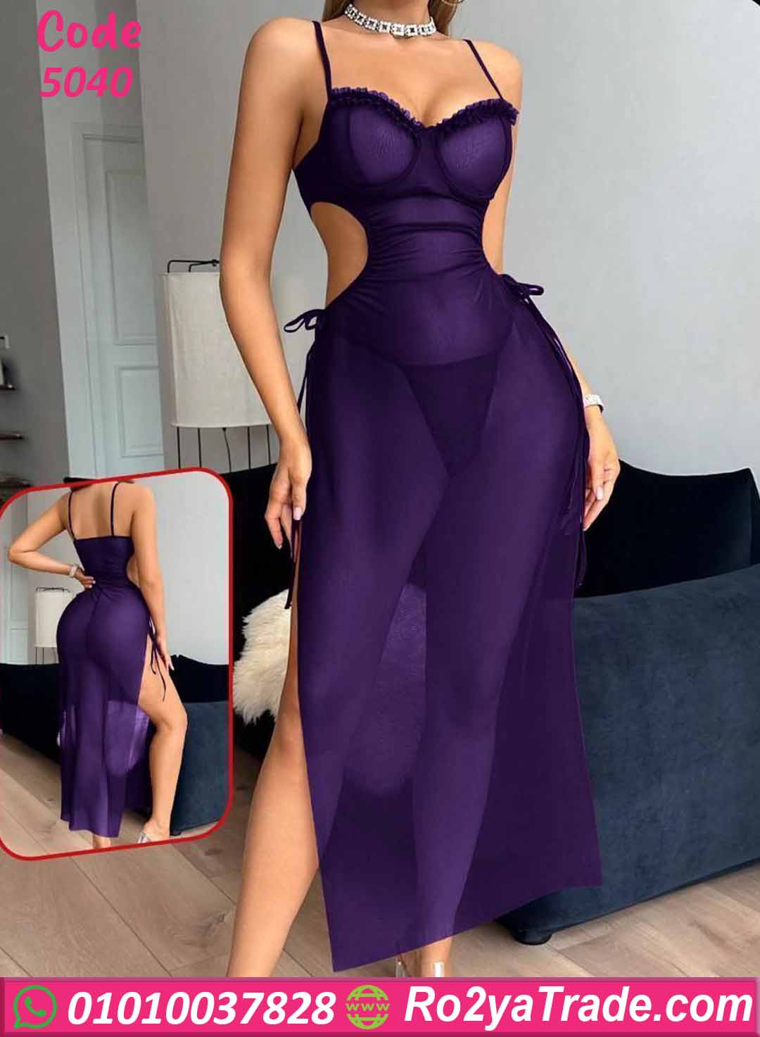 لانجري طويل شيفون بقصة خصر مفتوحة ولمسة أنثوية جريئة تخليكي في قمة الدلع 🔥💜