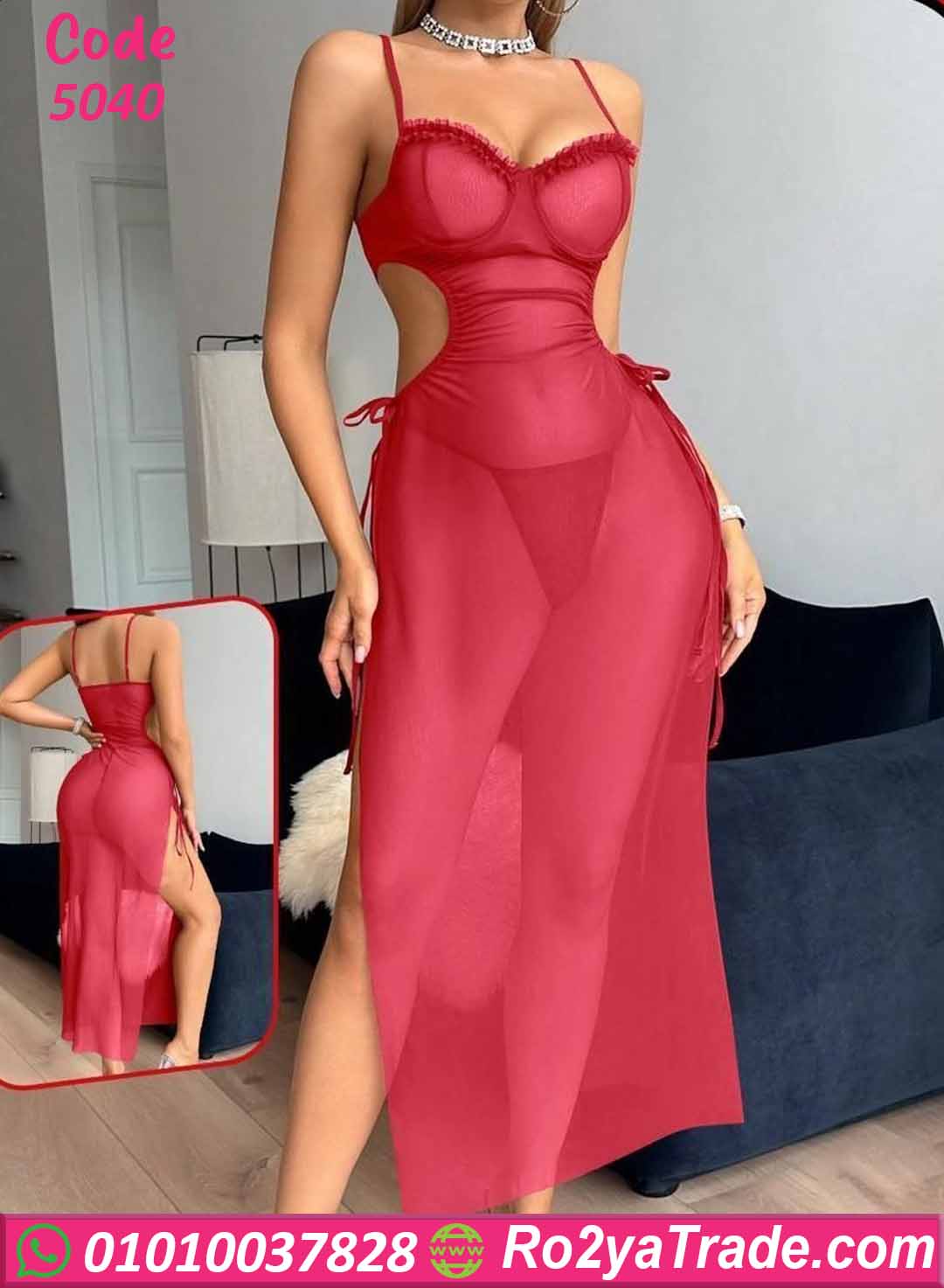 لانجري شيفون طويل 5040 من Hot Night تصميم أنيق وجذاب بخامة شيفون ناعمة وشفافة بتنساب على الجسم بشكل راقي.