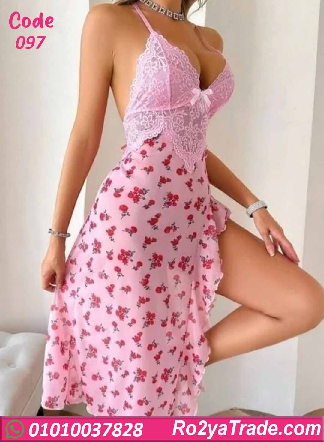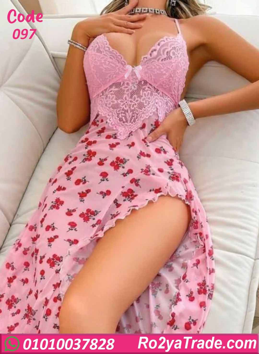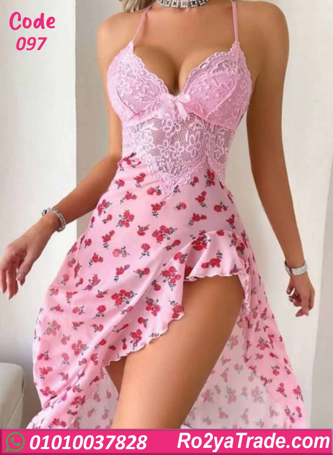 لانجري حريمي صيفي بتصميم أنثوي ناعم يجمع بين الدانتيل الوردي الرقيق ونقشة الورد الناعمة، بيدي إحساس رومانسي ومثير في نفس الوقت. تصميمه طويل مع فتحة جانبية جريئة بتبرز الأنوثة وتدي حرية حركة ولمسة جذابة، مناسب للحظات الخاصة وإطلالة أنيقة ومريحة.