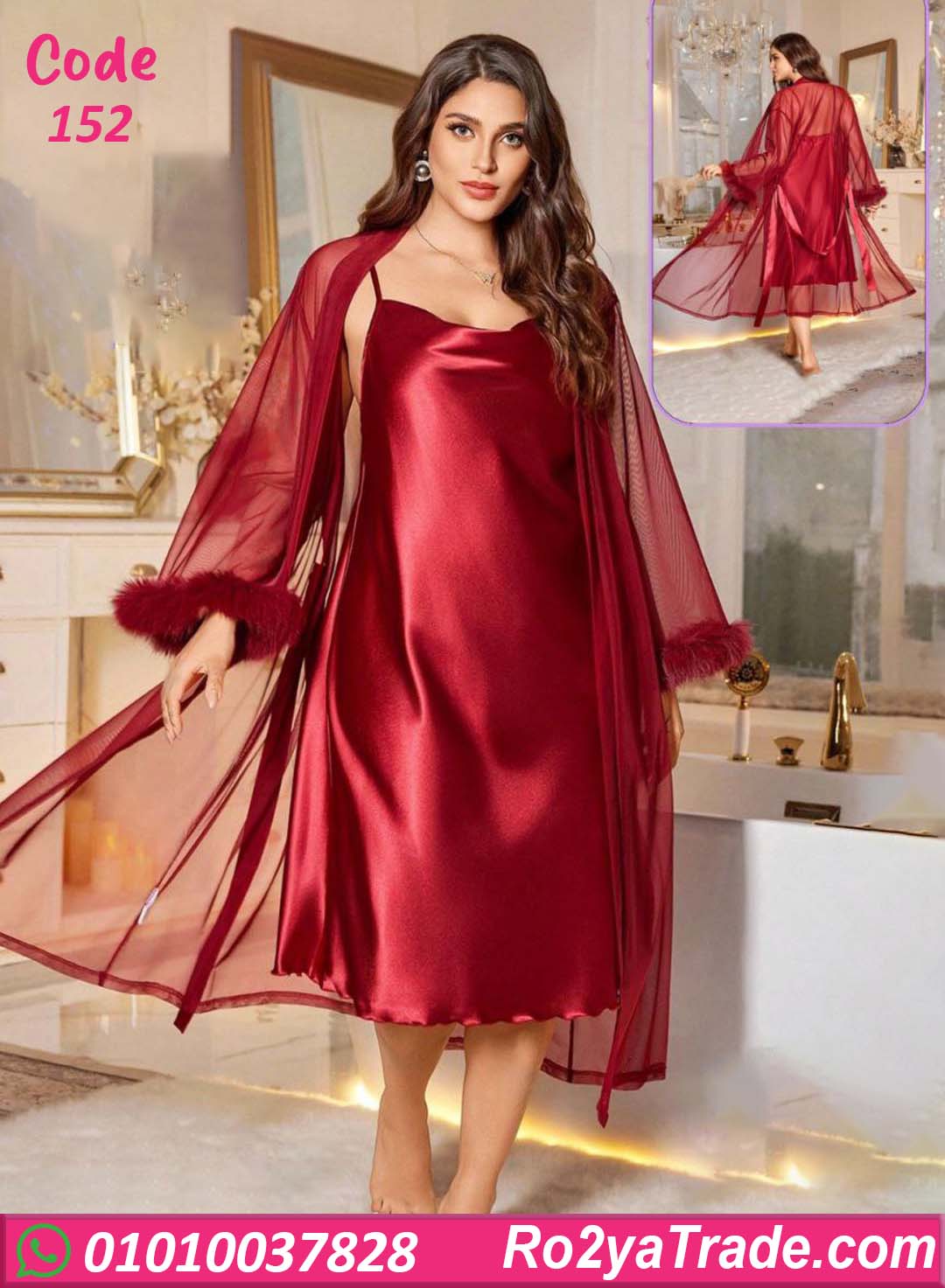 الروب الشيفون المرفق بيضيف لمسة فخامة وخصوصية، وبيكمّل الإطلالة بشكل راقي، سواء للاستخدام في البيت أو في اللحظات الخاصة.