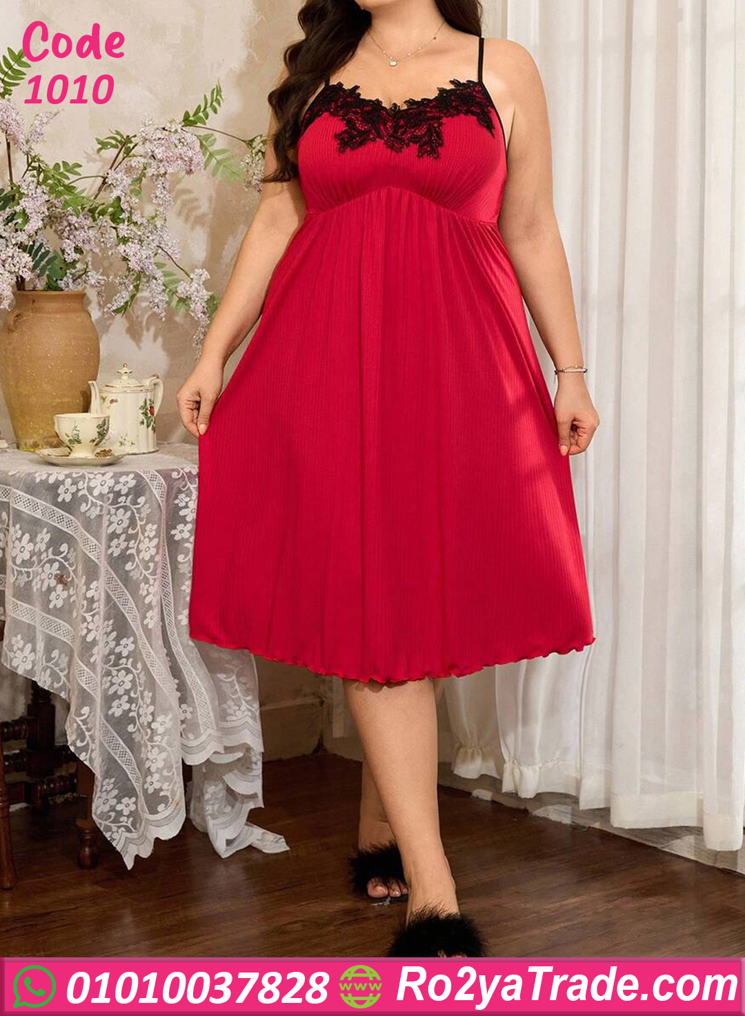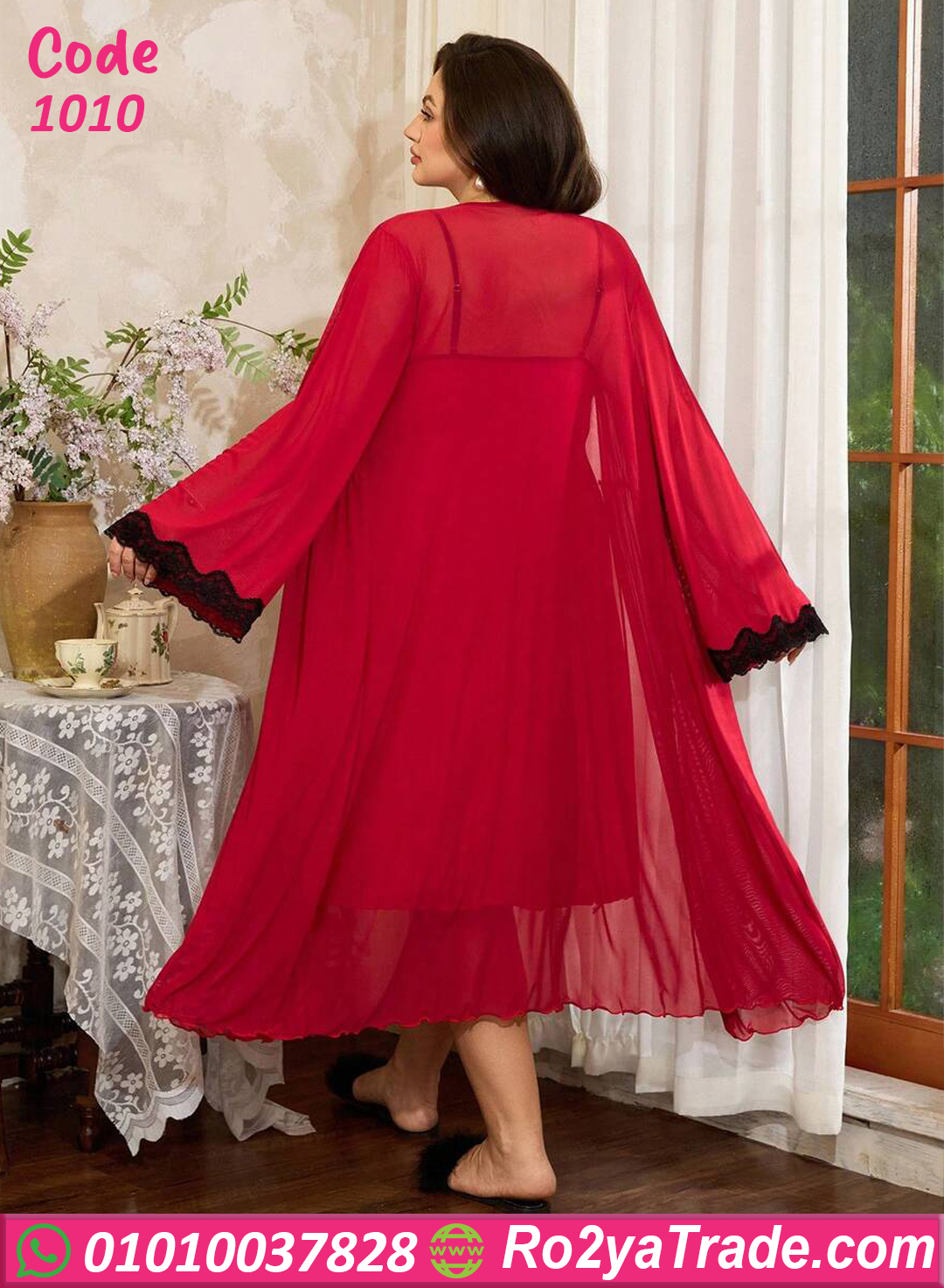 لانجري طويل بالدانتيل الأحمر – كود 1010