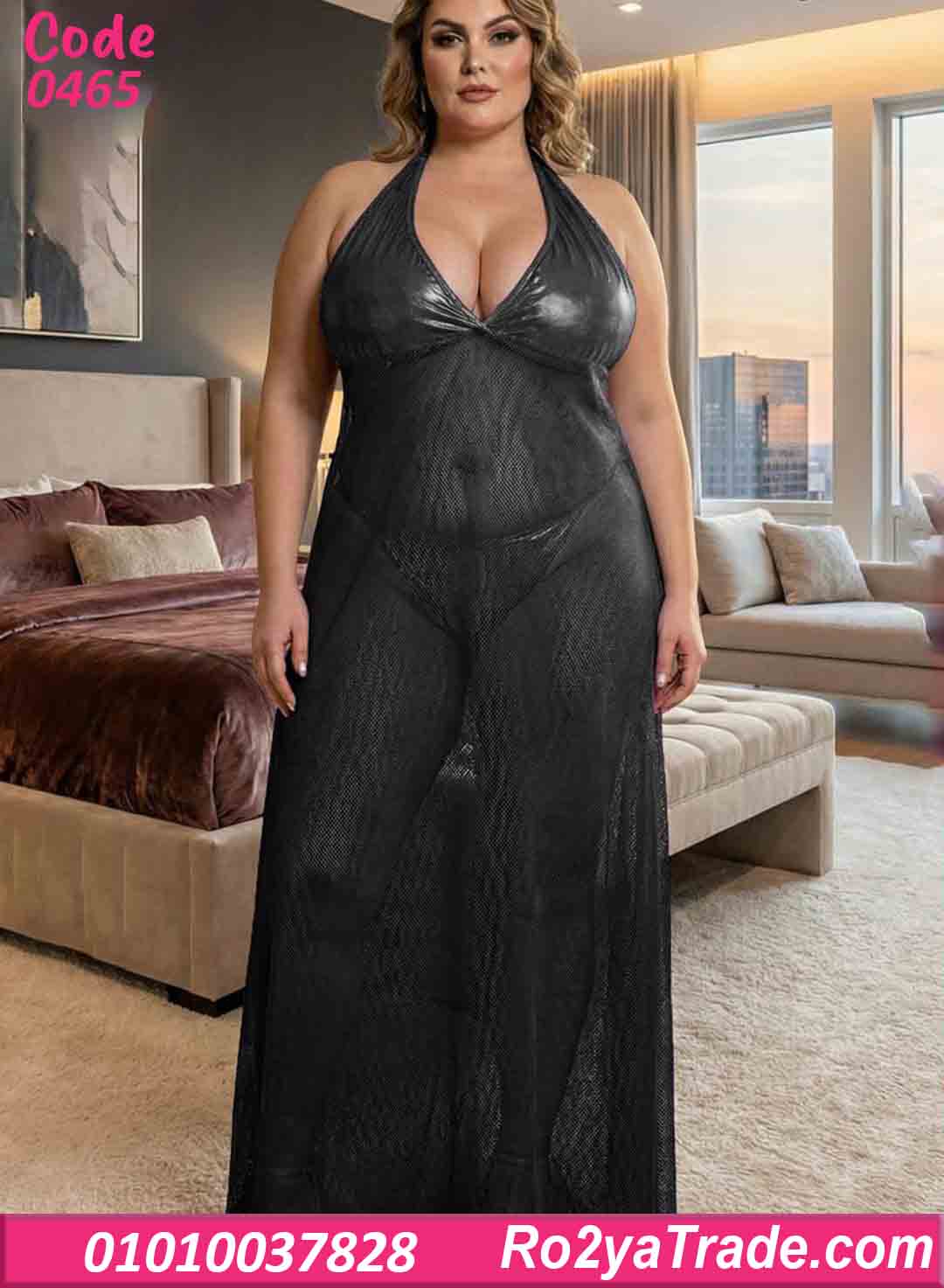 لانجري طويل كود 0465 من ماركة Big Funny مصمم ليبرز جمال القوام الممتلئ بثقة وأناقة. يتميز بقصة هالتر (رباط خلف الرقبة) تمنح الصدر شكل جذاب وثابت، مع خامة شبكية شفافة وانسيابية تضيف لمسة أنثوية راقية.