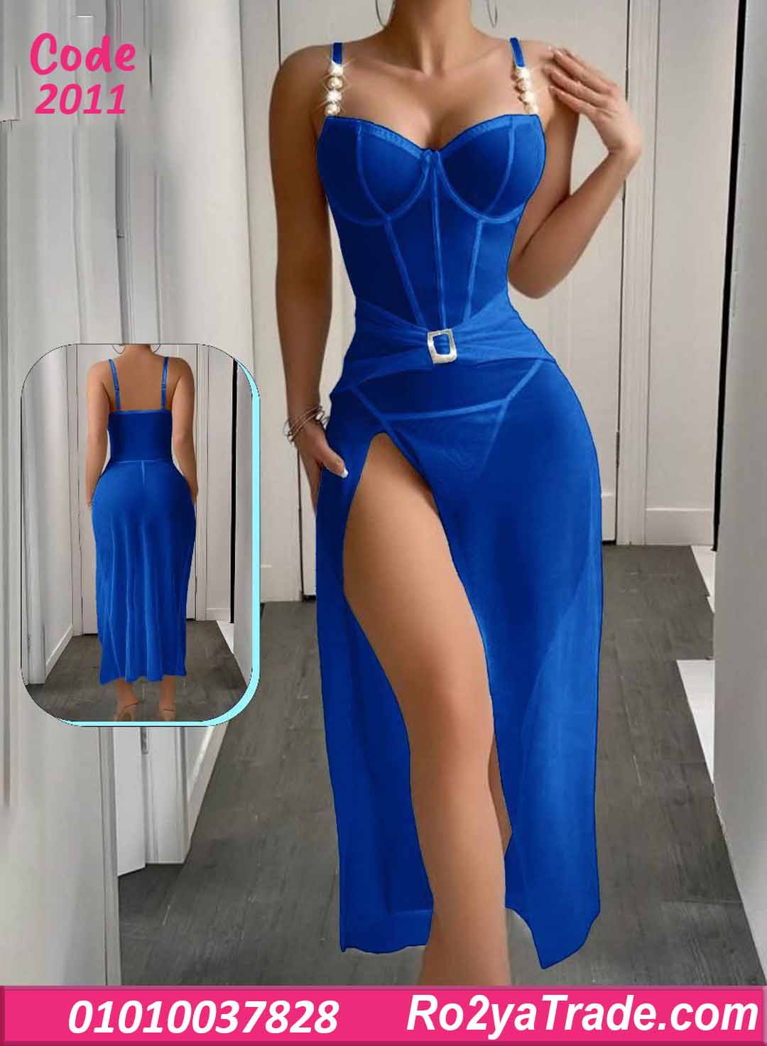 متوفر بلونين مميزين (أزرق ملكي / أسود شفاف)، بقصة طويلة مع فتحة جانبية عالية بتبرز جمال القوام وتديكي إطلالة جريئة وأنيقة في نفس الوقت.