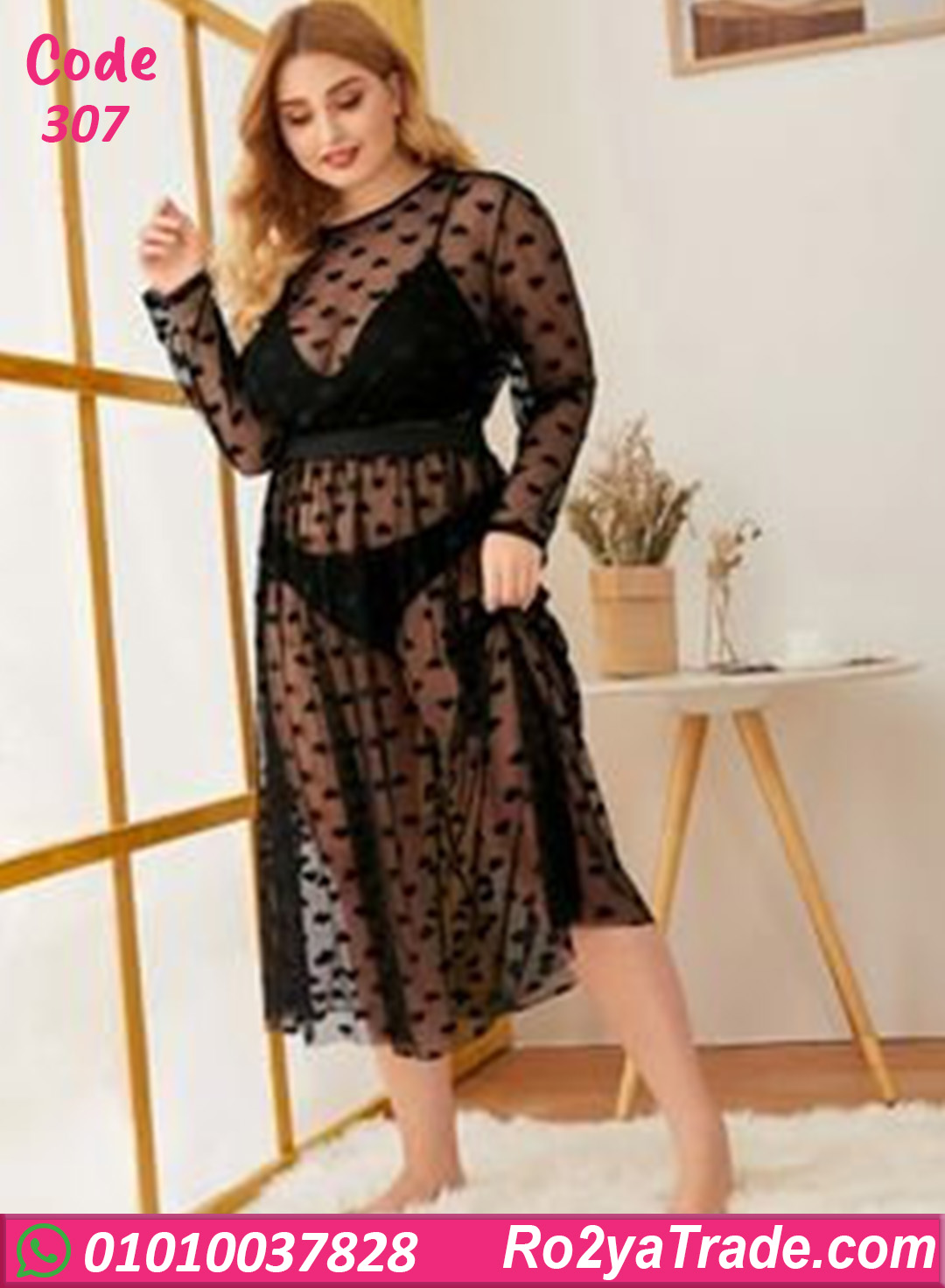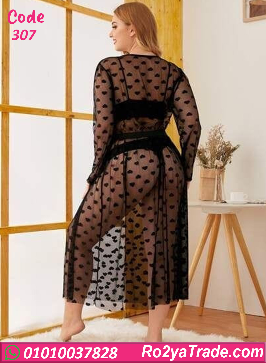 لانجري طويل مصنوع من خامة شبك خفيفة وناعمة على الجسم، تصميمه بطبقتين مع رسمة قلوب شيك بتدي لمسة أنوثة جذابة، مناسب للاستخدام في اللحظات الخاصة أو لإطلالة أنثوية مثيرة، مريح في اللبس وبيتحرك مع الجسم بسهولة، اختيار مثالي لكل ست بتحب الإحساس بالنعومة والجاذبية.