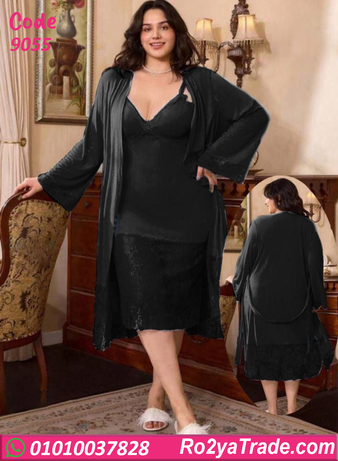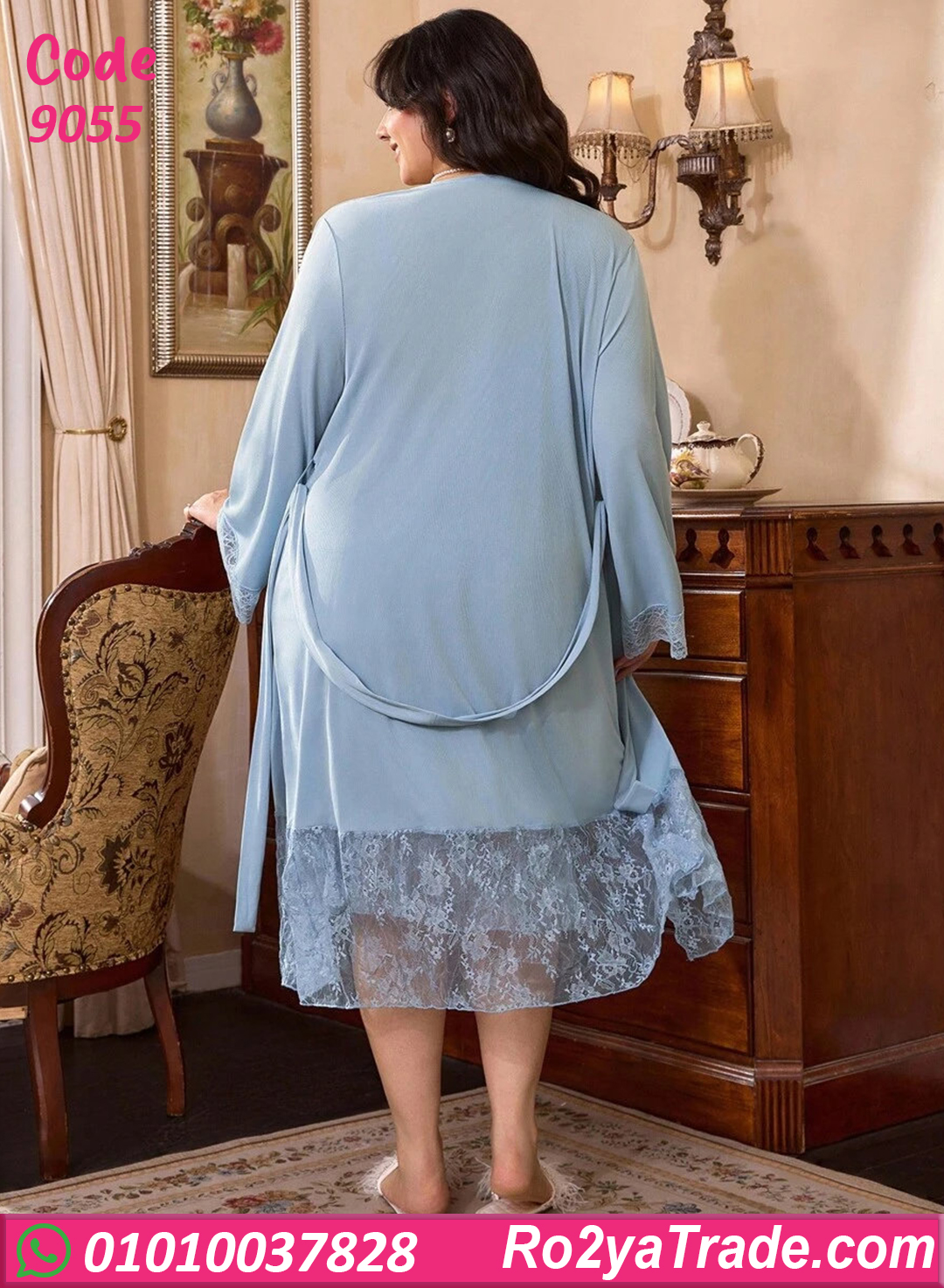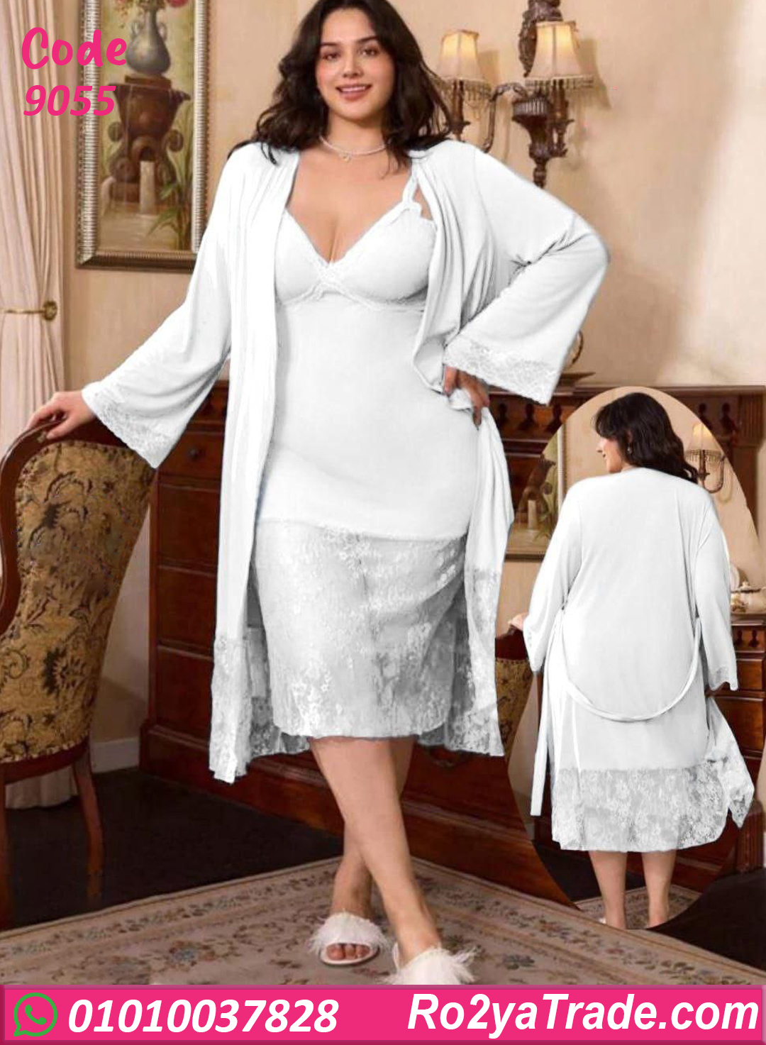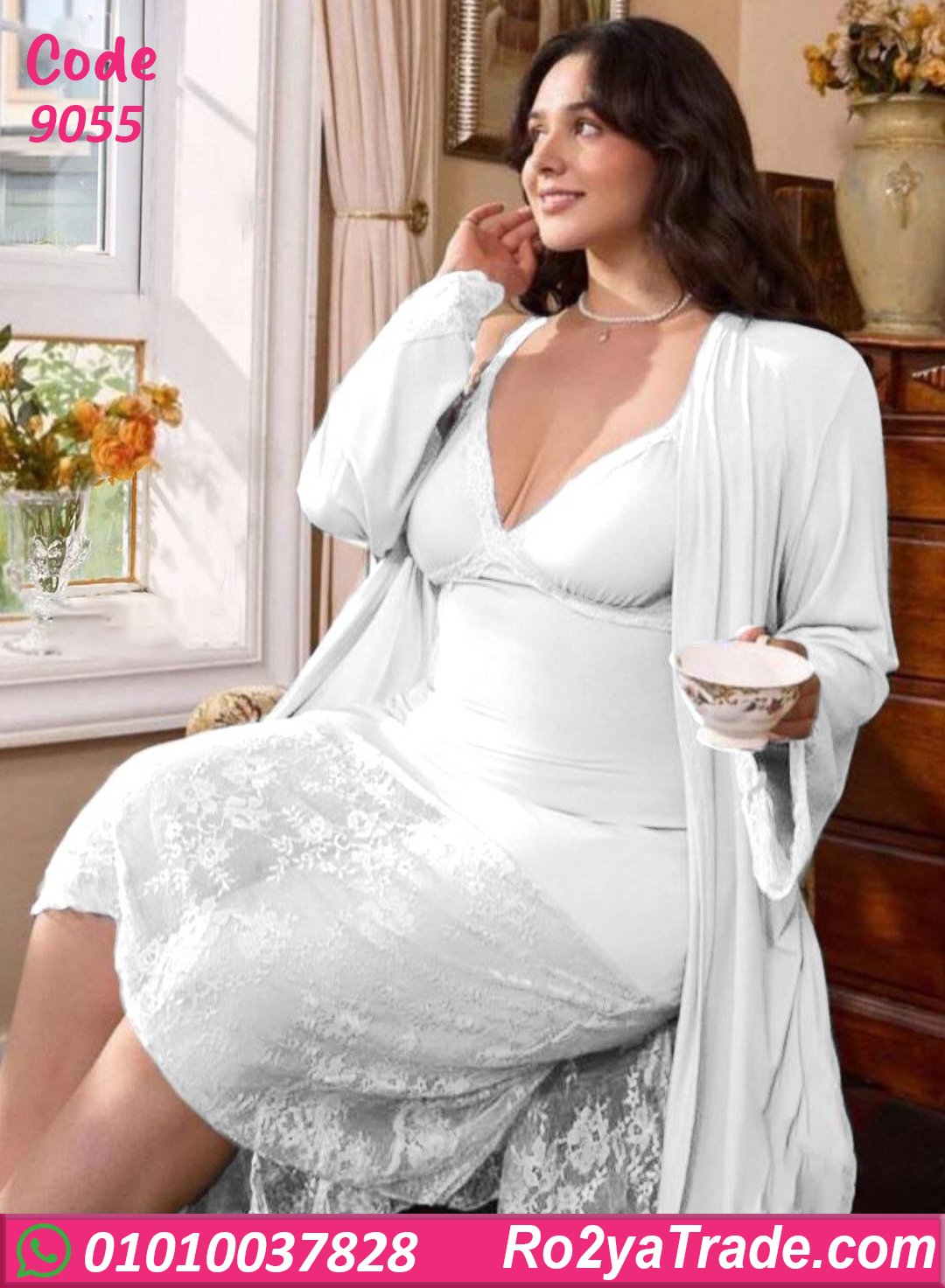 لانجري طويل شيك مع روب بتصميم أنثوي ناعم يدي إحساس بالراحة والشياكة في نفس الوقت، مناسب للاستخدام اليومي وكمان للإطلالات الهادية في البيت.