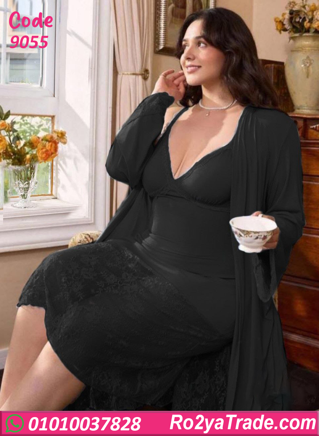 لانجري طويل كود 9055 مكوّن من فستان لانجري ناعم مع