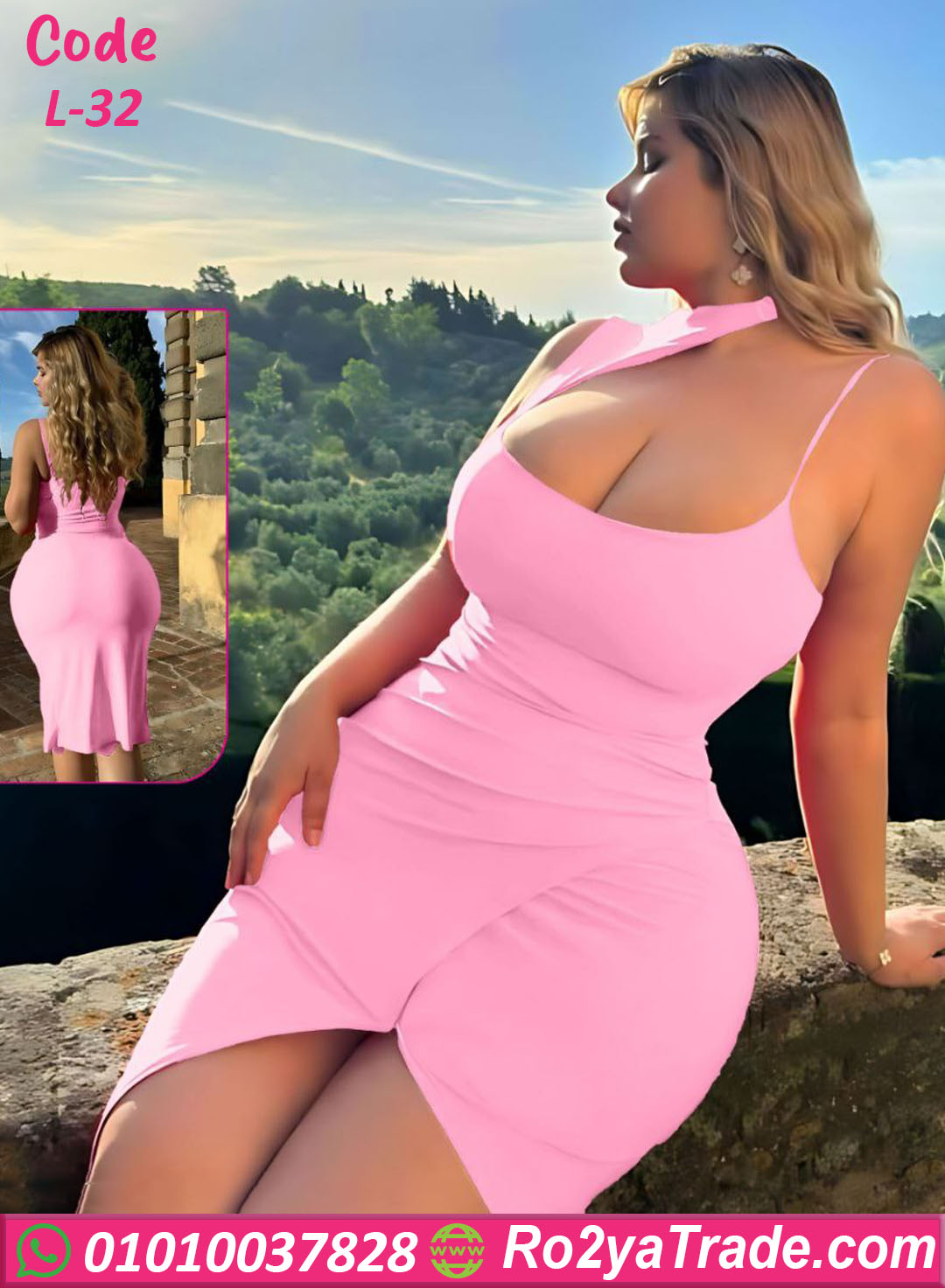 الموديل مزود بحمالات رفيعة تمنح التصميم مظهرًا أنيقًا وبسيطًا، بينما يأتي الجزء الخلفي بتصميم مفتوح قليلًا ليضيف لمسة جمالية جذابة تزيد من أناقة الإطلالة.