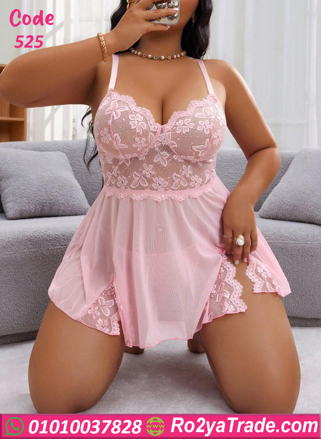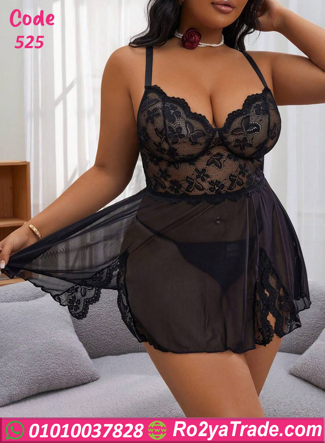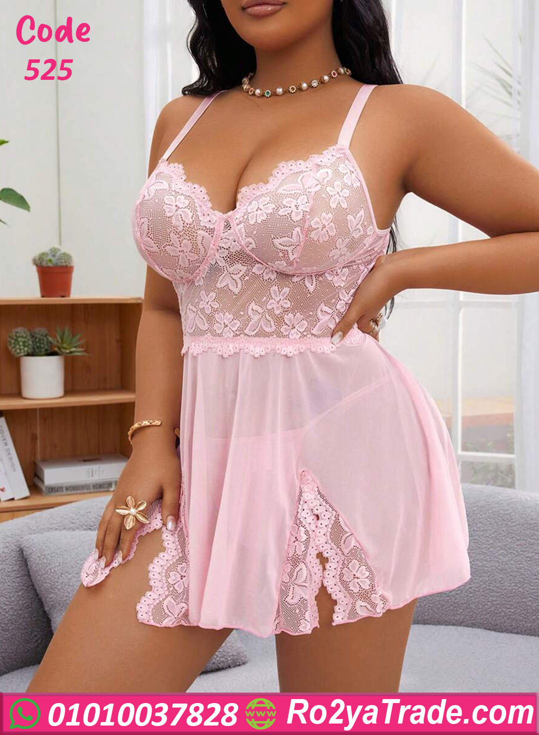 الخامة مرنة وبتاخد شكل الجسم بطريقة شيك ومغرية جدًا، التصميم فيه فتحة جانبية رقيقة ودانتيل ناعم بيزود الدلع 😍