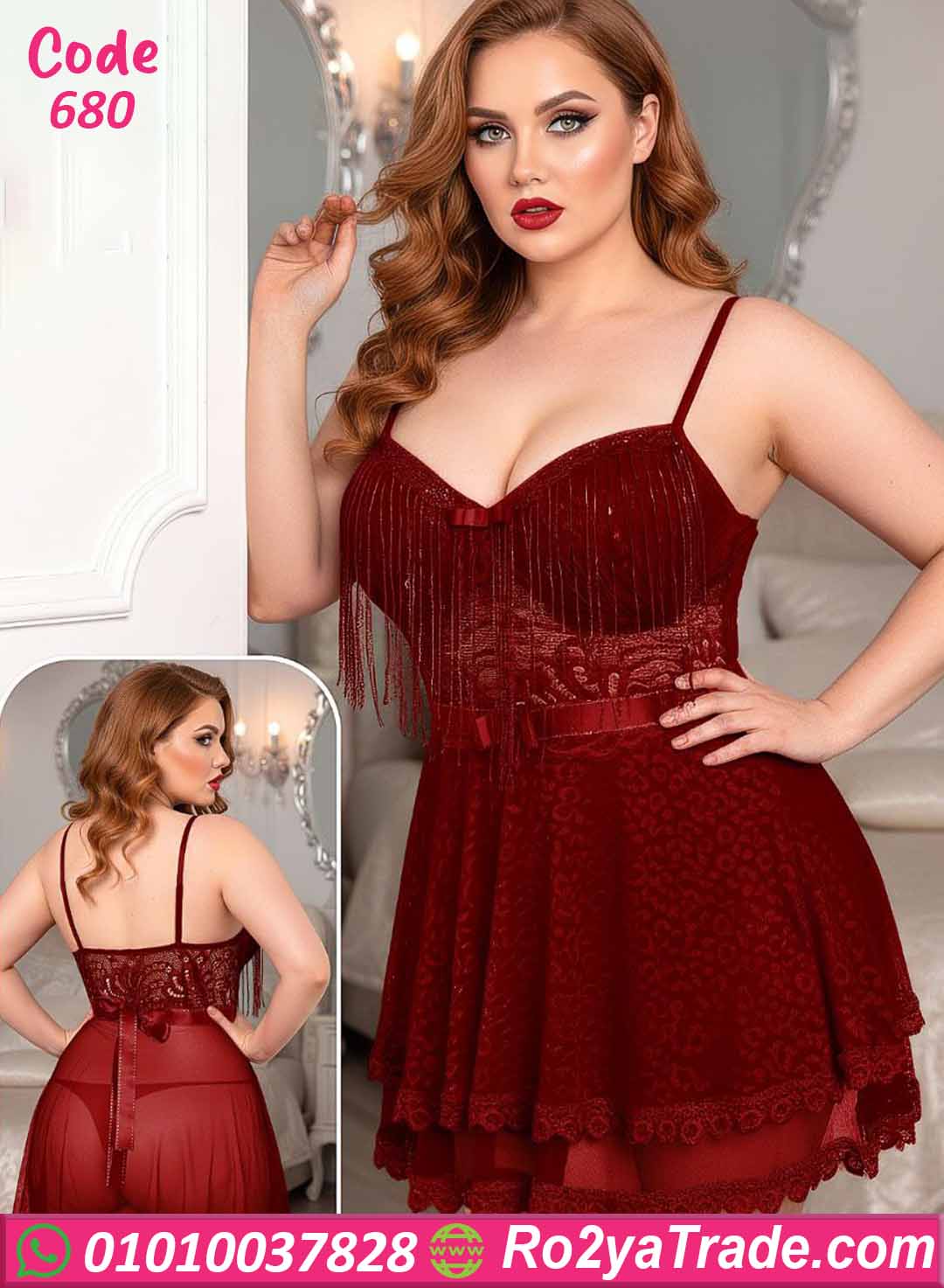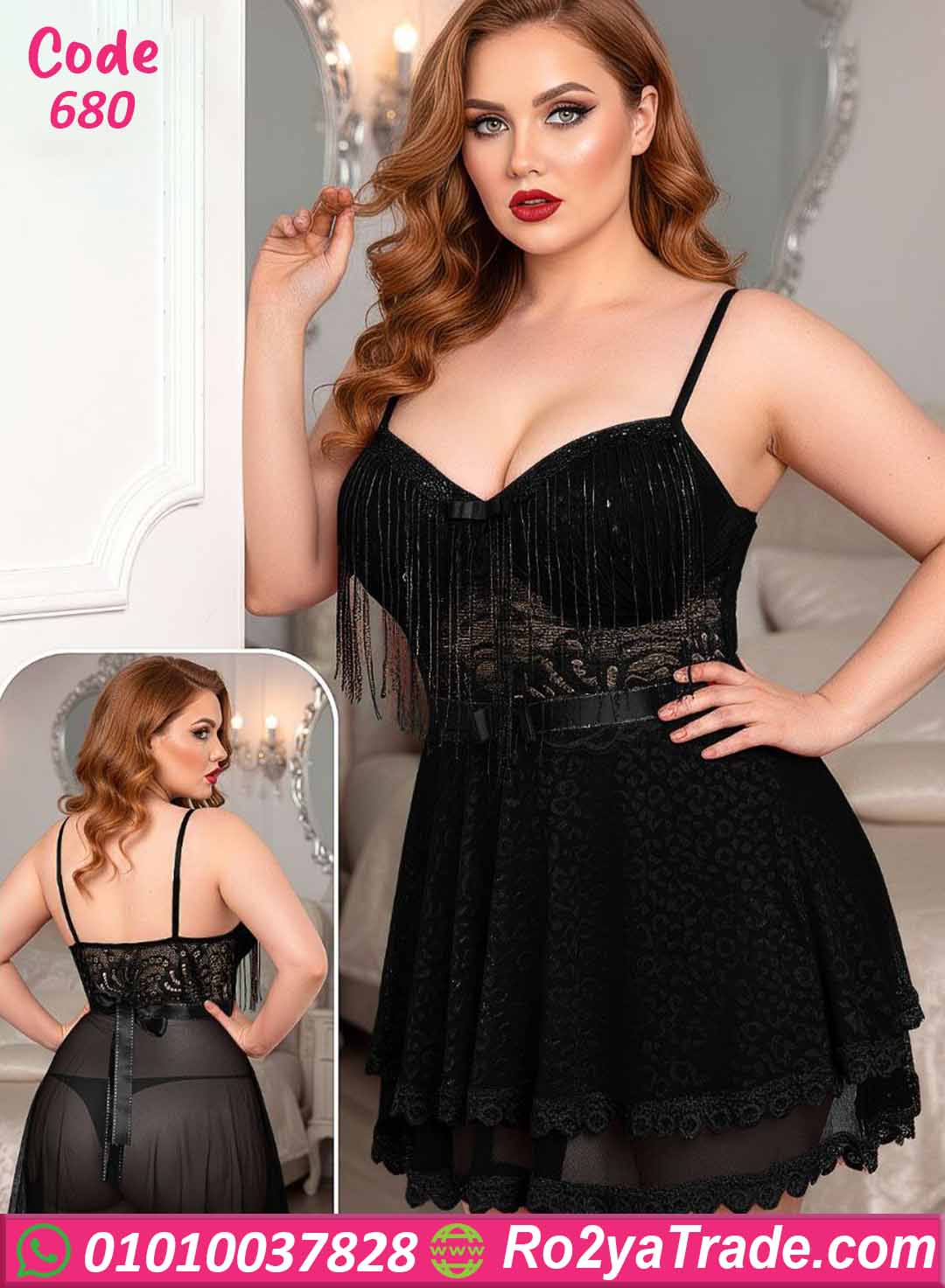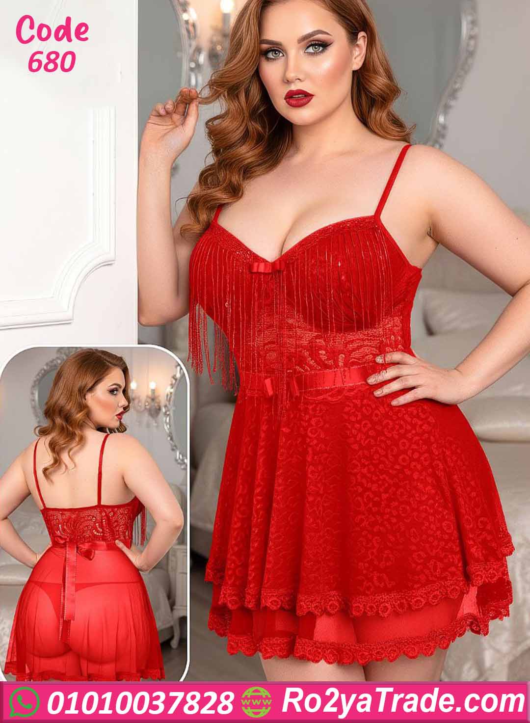 لانجري قصير بتصميم أنثوي جذاب يبرز القوام بشكل ناعم ومثير، معمول بخامة دانتيل فخمة وشفافة بتدي إحساس بالأنوثة والنعومة. الموديل مزود بتفصيلة شراشيب رفيعة على الصدر بتدي حركة وشكل شيك، مع قصة صدر مريحة وحمالات رفيعة قابلة للتعديل لثبات أفضل.