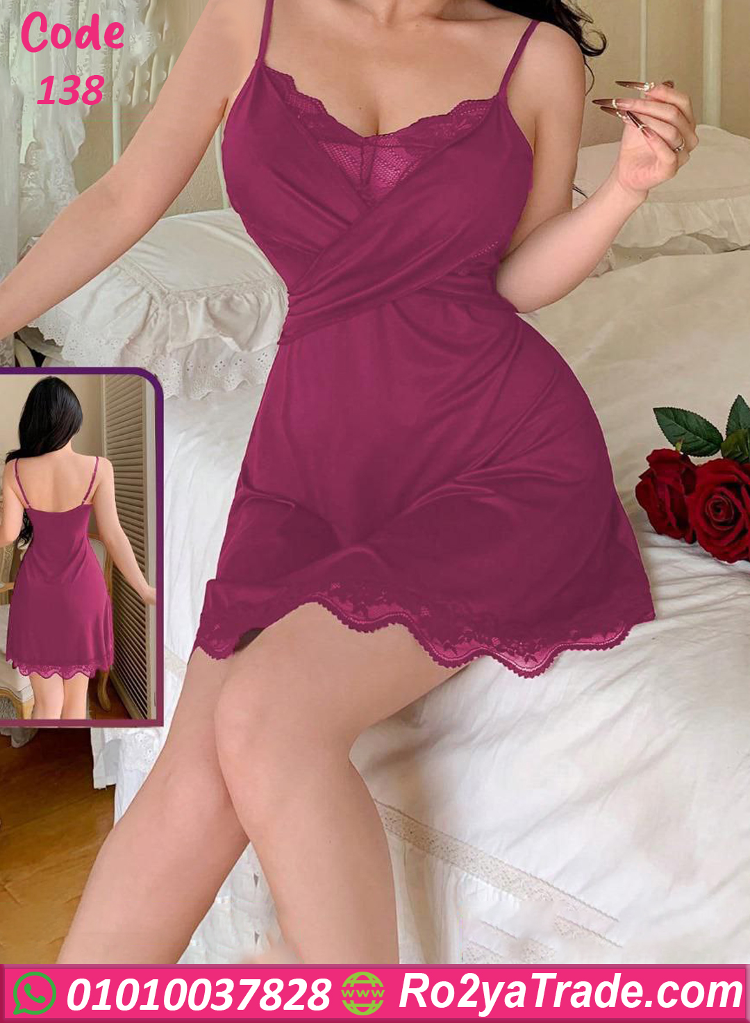 لانجري قصير دانتيل أنيق بحمالات رفيعة – كود 138