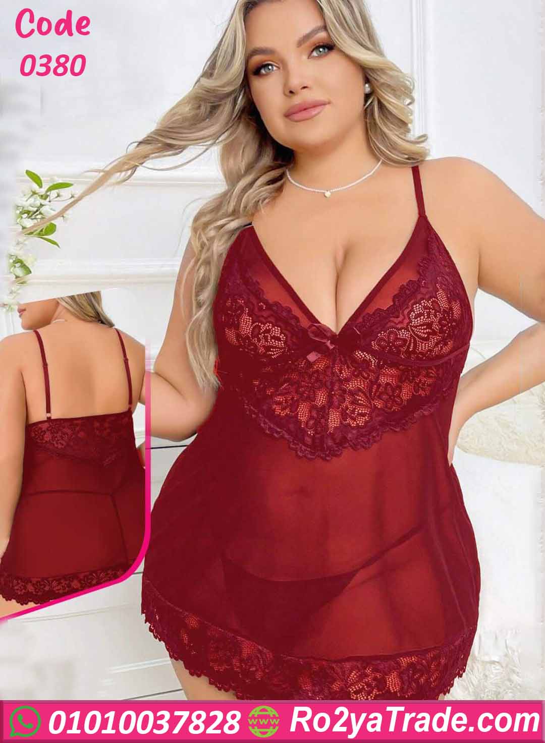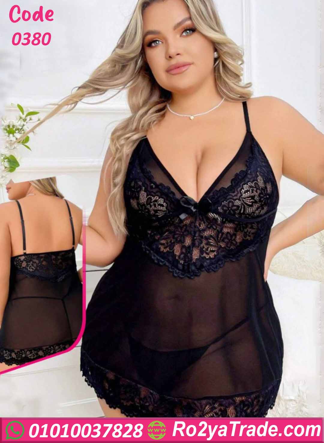 اطلبي الآن لانجري قصير دانتيل شفاف كود 0380 بأفضل سعر