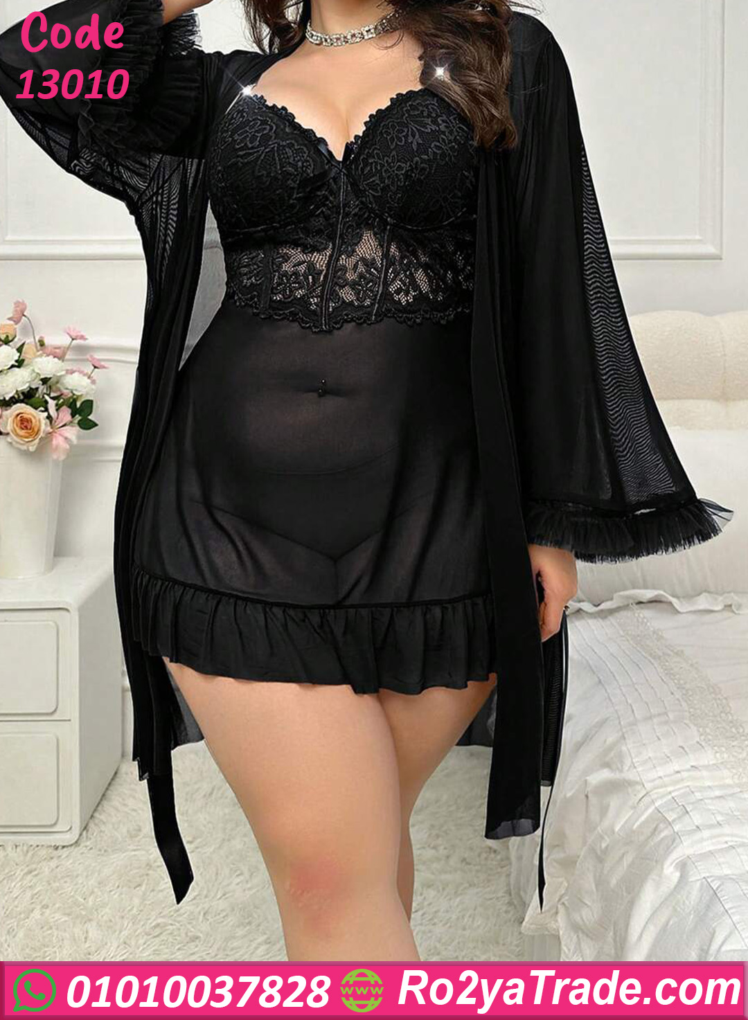 لانجري قصير دانتيل مع روب – كود 13010 من ماركة Pink Berry بتصميم أنيق يجمع بين الجاذبية والرقي.