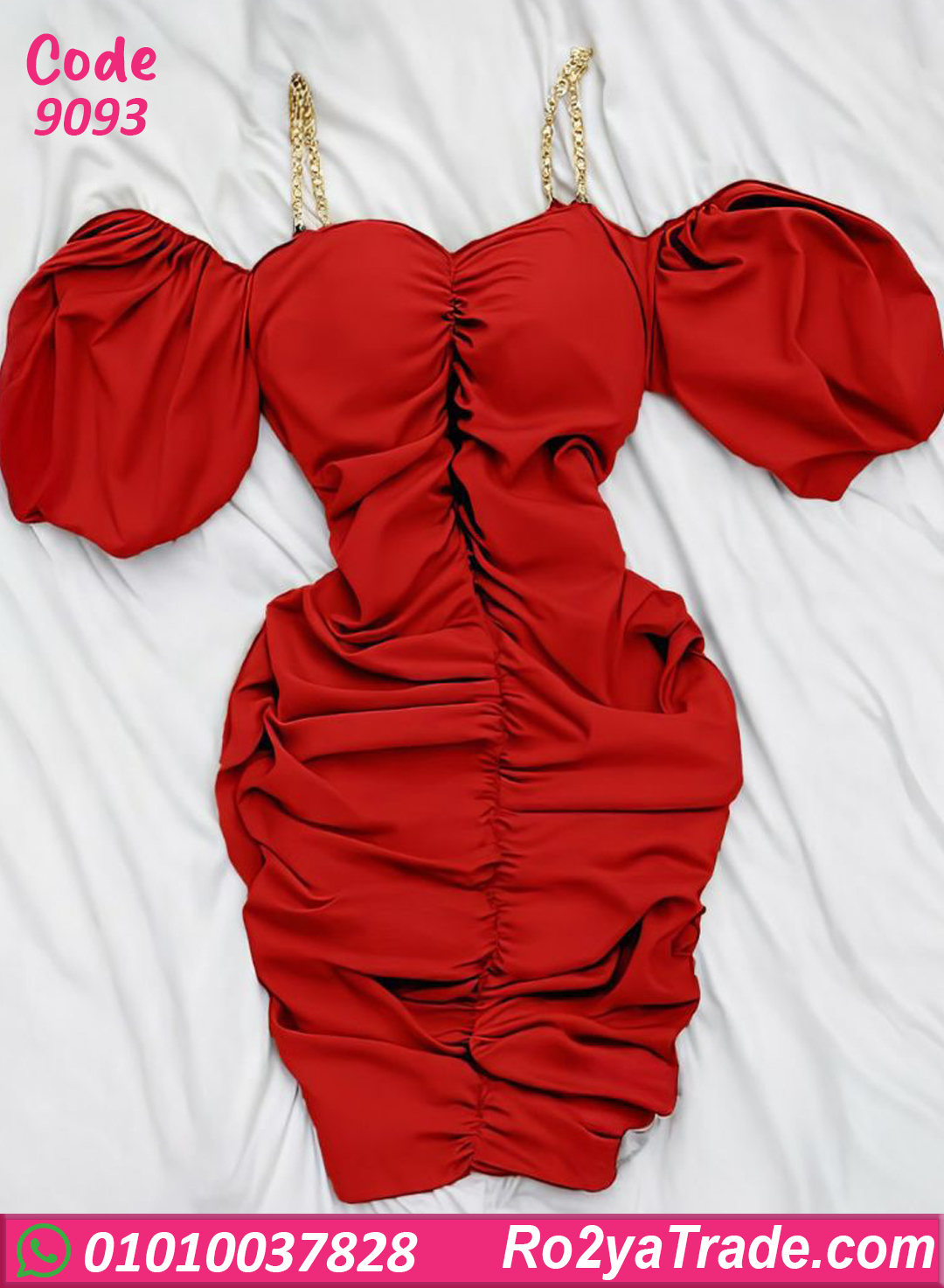 لانجري قصير دريس صيفي كود 9093 اختيار مثالي لكل ست بتحب الإطلالة الجذابة والناعمة في نفس الوقت. التصميم معمول بقصة محددة على الجسم مع كسرات بتدي شكل أنثوي جذاب، وأكمام منفوشة بتضيف شياكة وتميز للقطعة.
