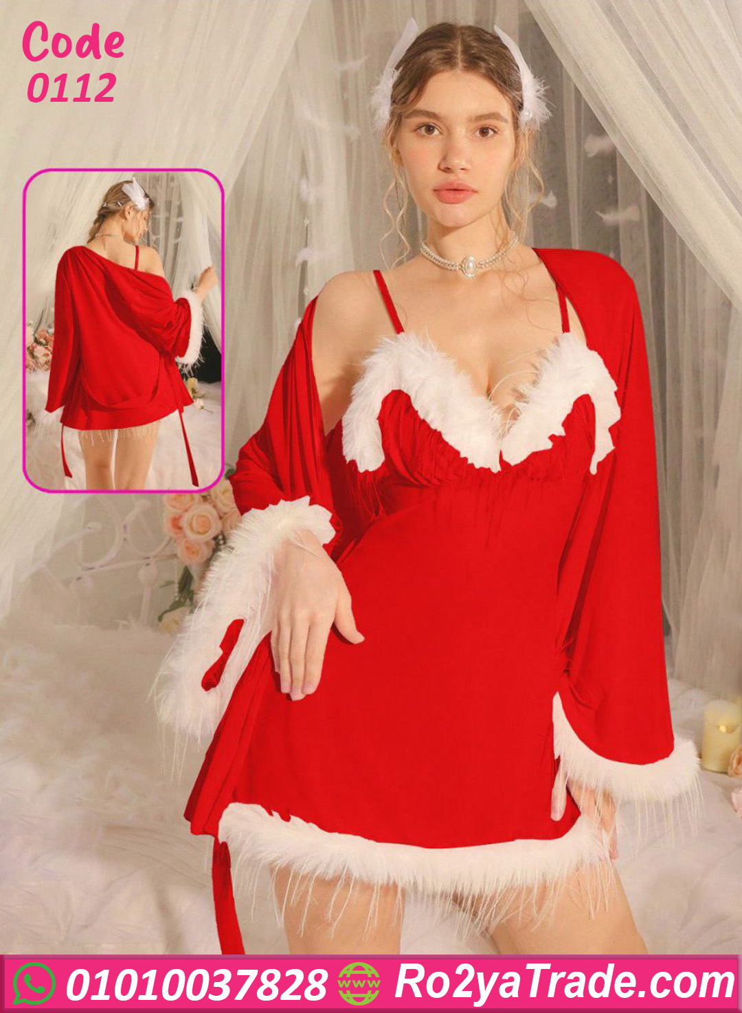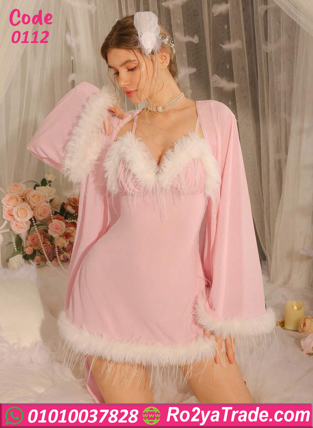 لانجري قصير بتصميم أنثوي جذاب ولمسة فرو ناعمة، مكوّن من قطعة داخلية مع روب خفيف، مناسب للعرائس والسهرات الخاصة، خامة ناعمة ومريحة على الجسم.