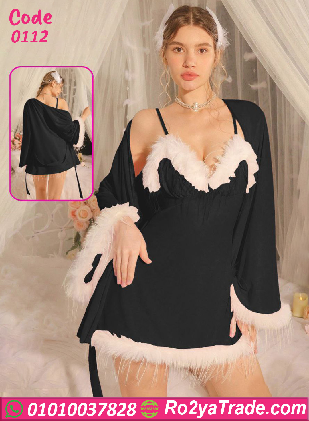 لانجري قصير حريمي بتصميم رقيق ومثير في نفس الوقت، مزوّد بتفاصيل فرو ناعمة عند الصدر والأطراف بتدي إحساس بالفخامة والأنوثة.