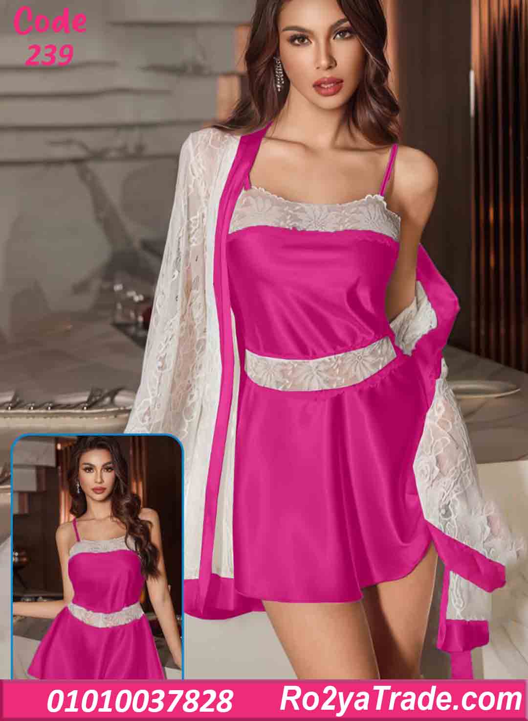 اطلبي الآن لانجري قصير مع روب دانتيل كود 239 بأفضل سعر