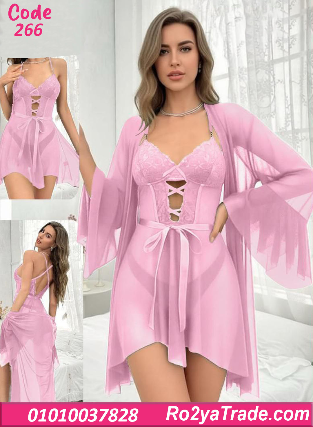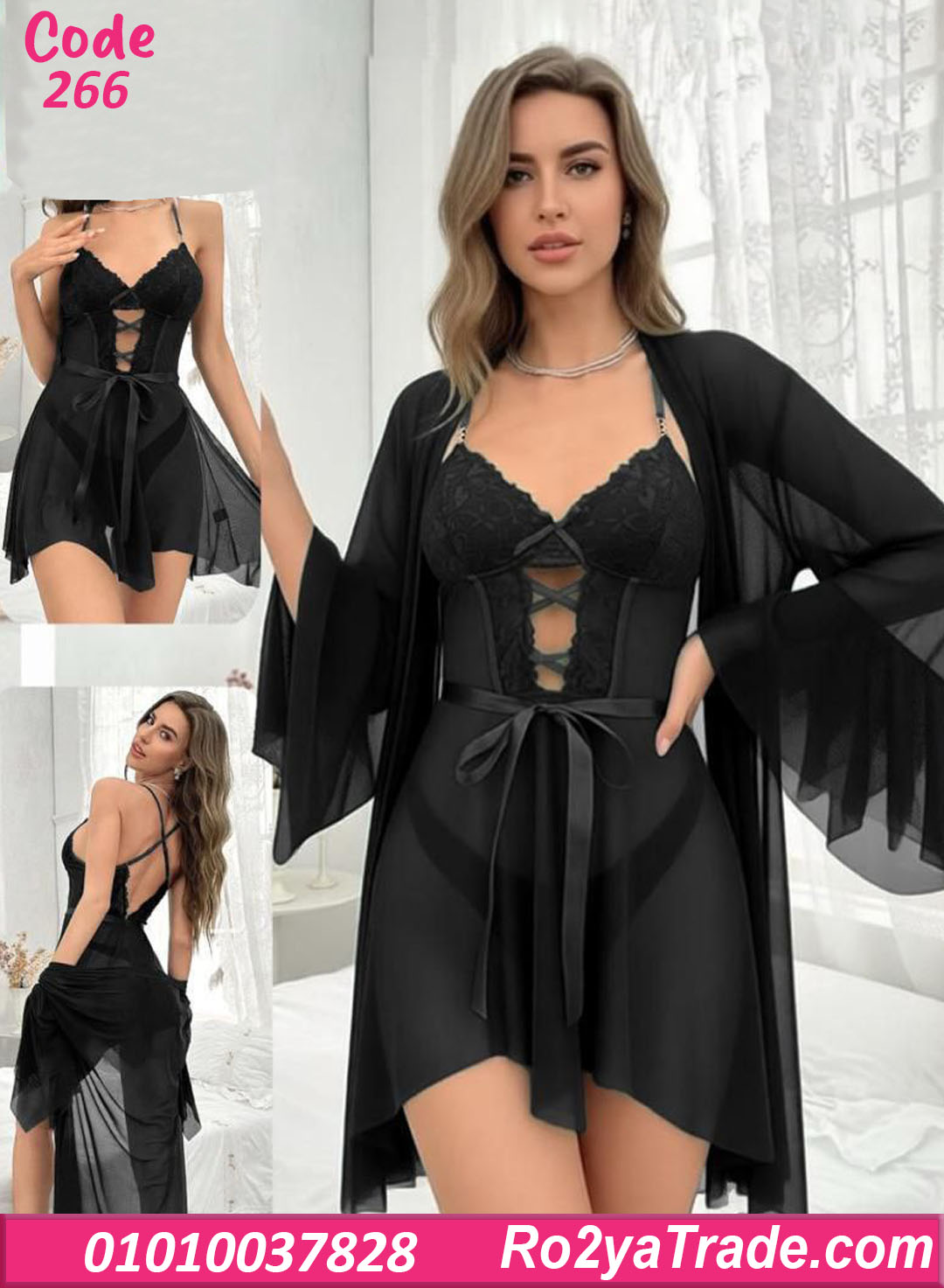 لو بتدوري على طقم لانجري يجمع بين الأناقة والأنوثة في نفس الوقت، موديل لانجري قصير مع روب – كود 266 هيكون اختيار مثالي لإطلالة جذابة ومميزة.