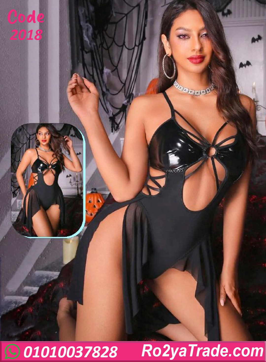 لانجري قصير حريمي بتصميم جريء ومثير، خامة جلد لامع مع تفاصيل سيور بتدي شكل أنيق وجذاب، مناسب للسهرات الخاصة ولحظات الدلع.