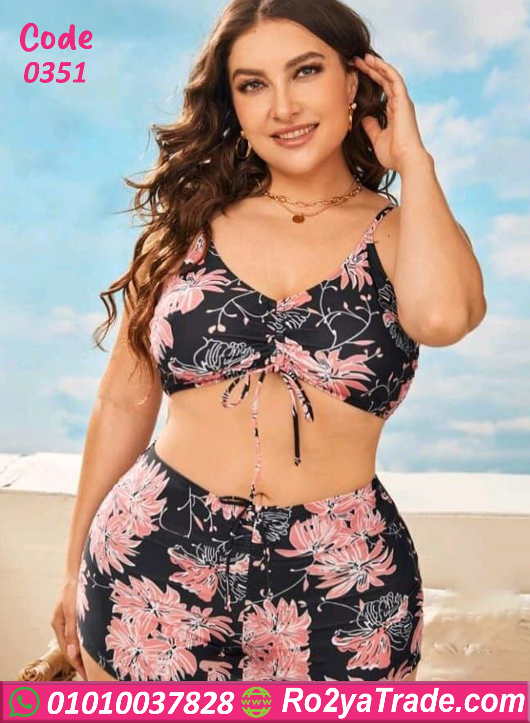 لانجري مثير كود 0351 تصميم قطعتين شيك جدًا، عبارة عن توب بحمالات رفيعة قابلة للتعديل مع شورت قصير مريح، بطبعة ورود وردي على أرضية سودة بتدي شكل أنثوي جذاب ومبهج.