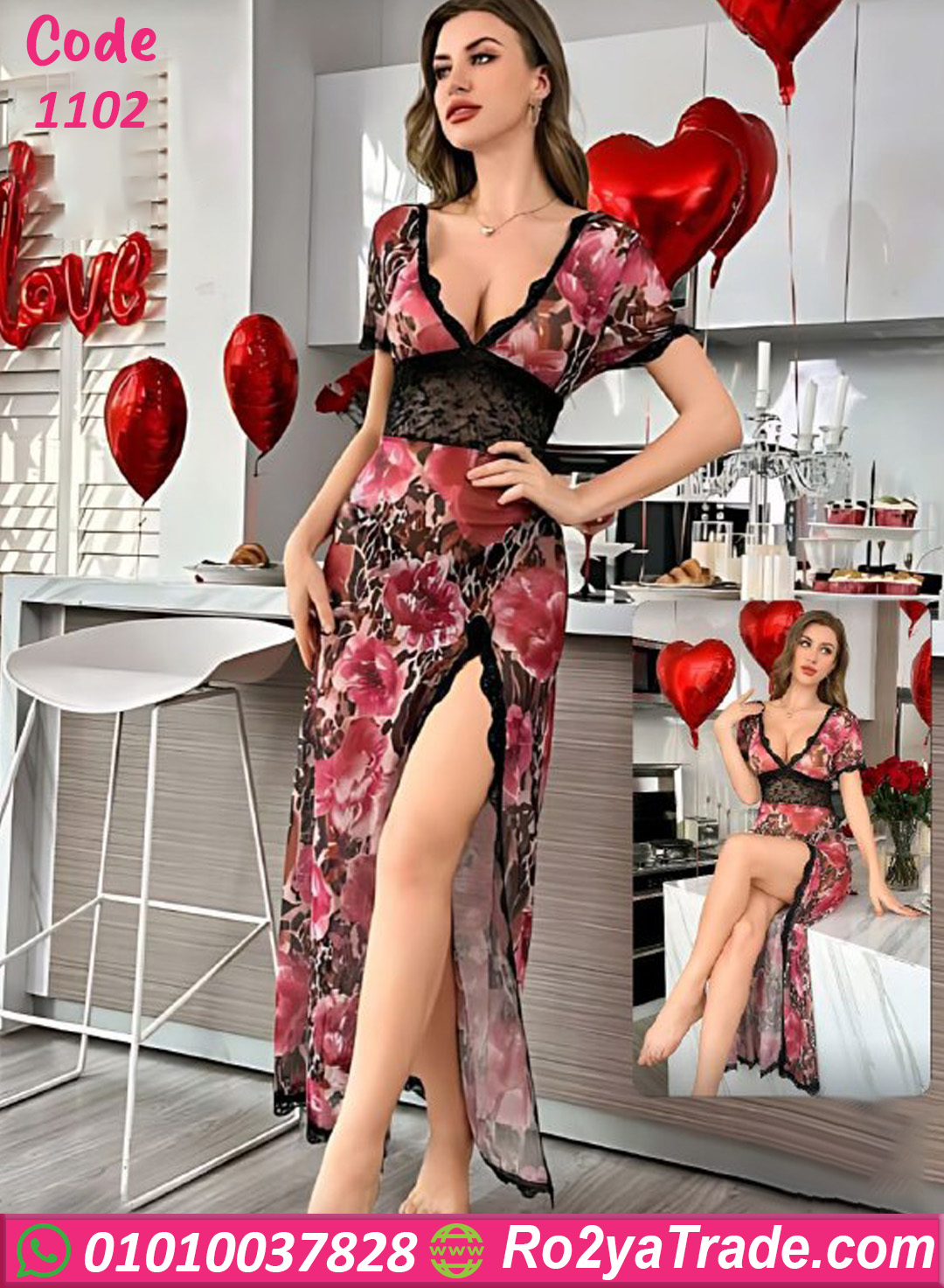 لانجري كود 1102 من ماركة Curve Lingerie بتصميم أنيق يجمع بين الأنوثة والجاذبية. يتميز التصميم بنقشة ورد جذابة مع تفاصيل دانتيل في منطقة الصدر والخصر تضيف لمسة أنثوية راقية.