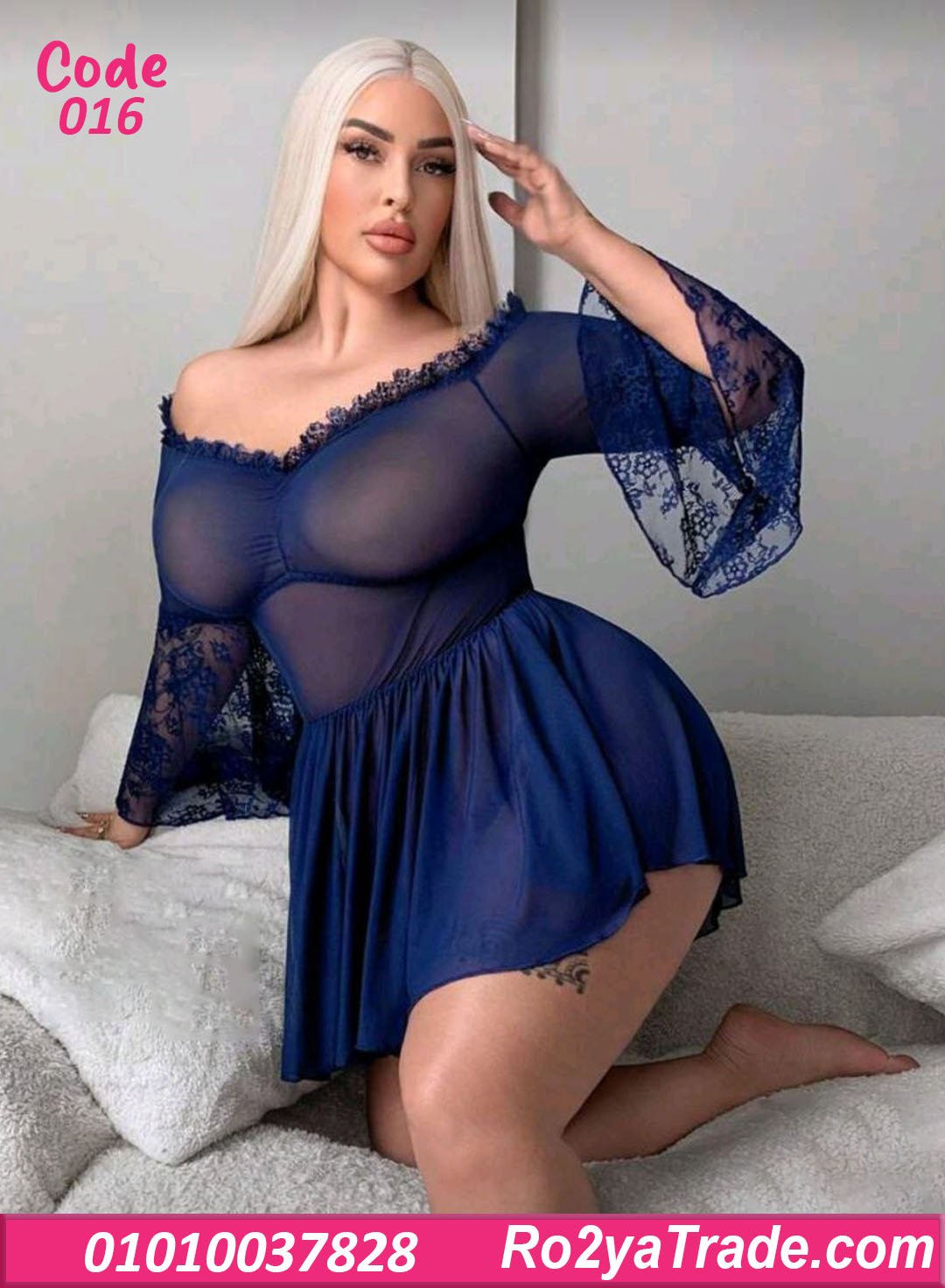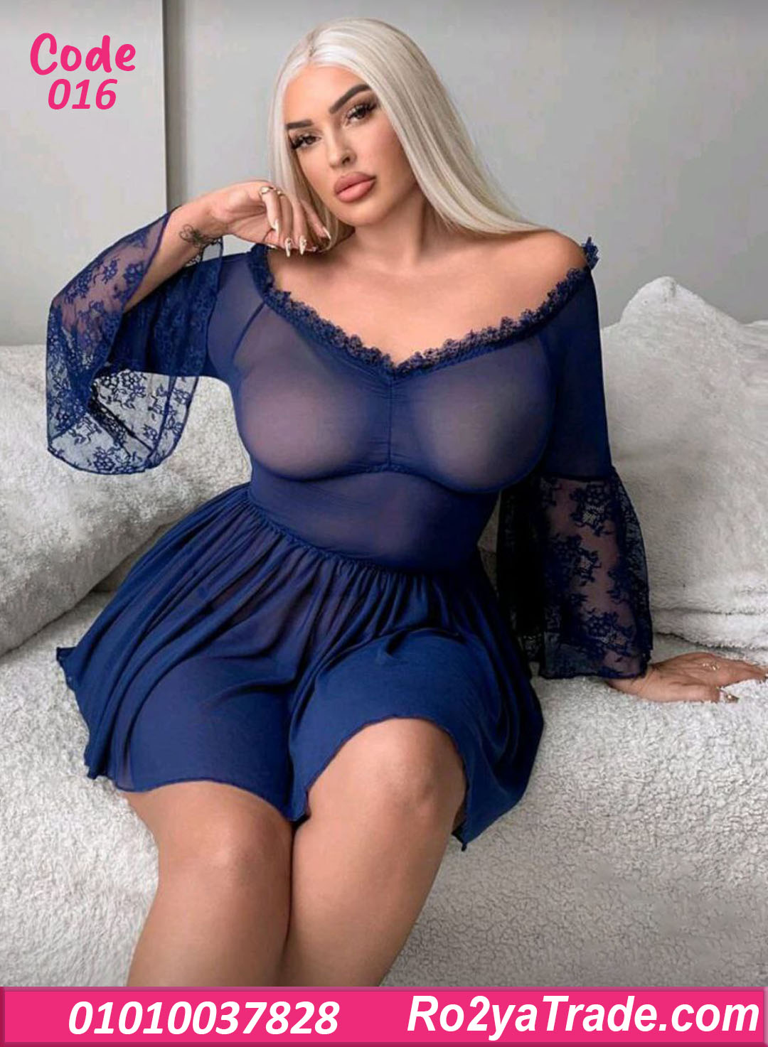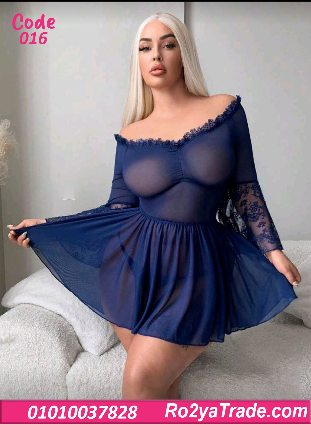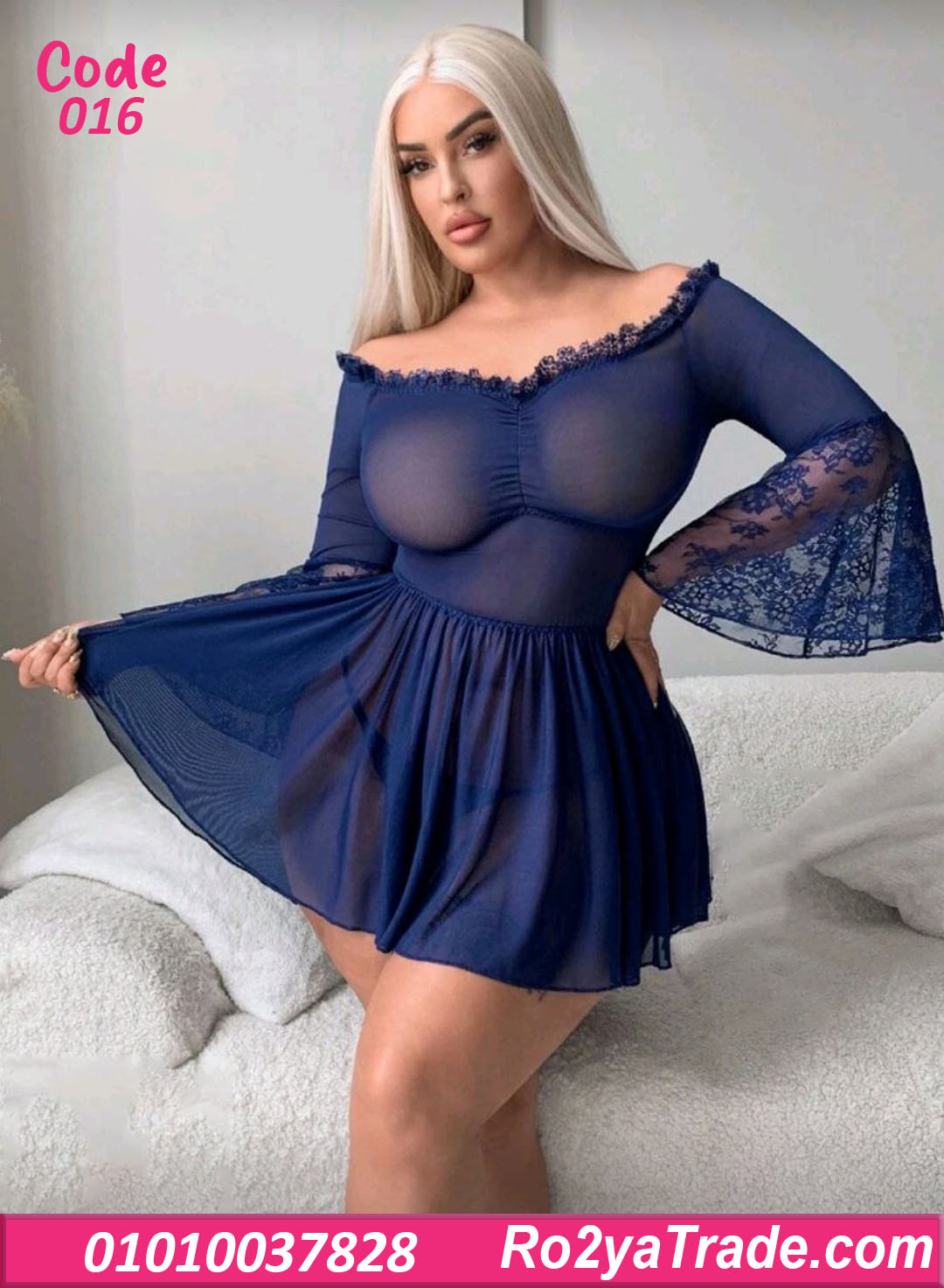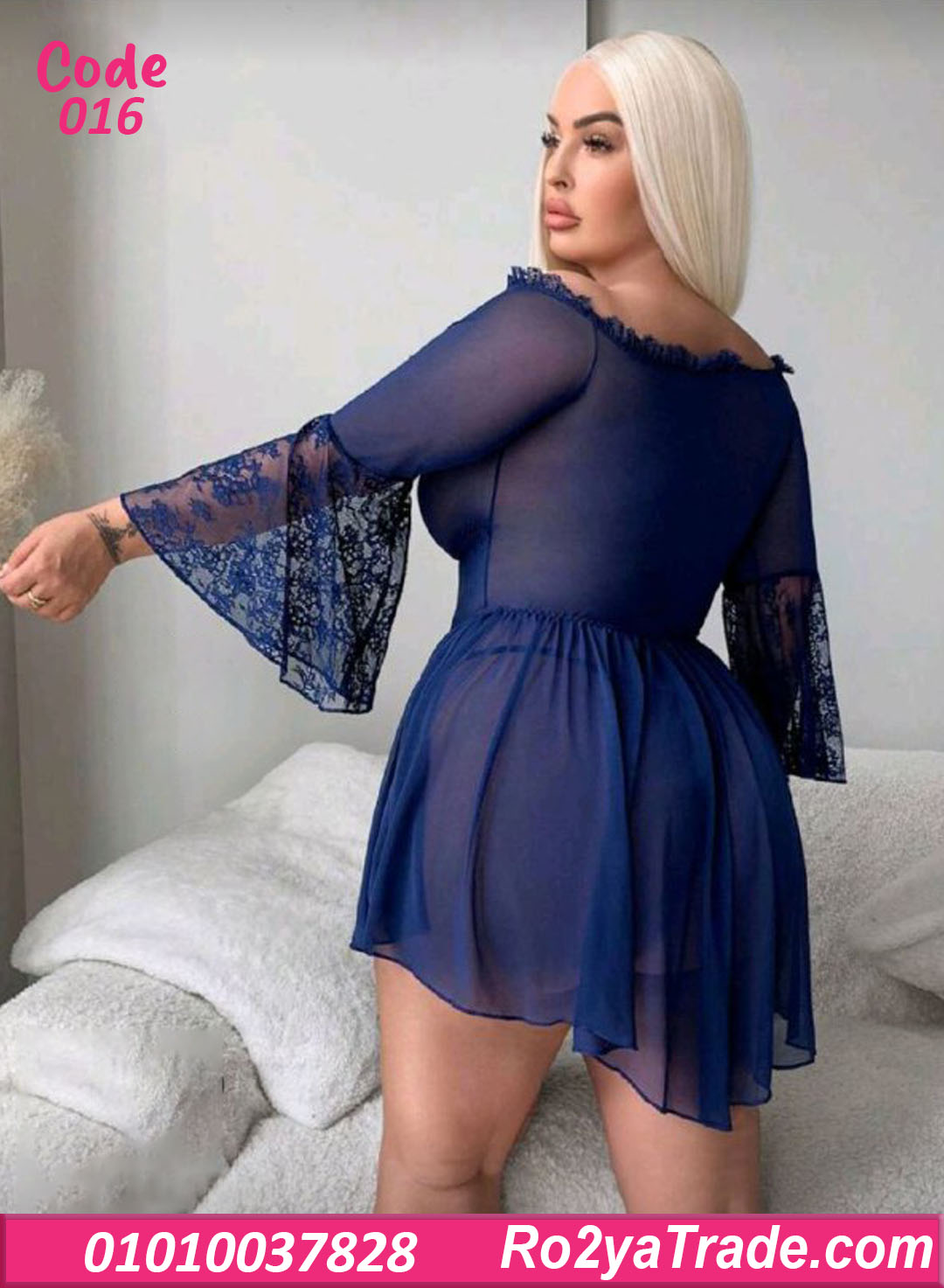 لانجري كود 016 يتميز بـ: ✔️ تصميم أوف شولدر بفتحة رقبة مزينة بدانتيل رقيق. ✔️ قماش شيفون شفاف ناعم يدي إحساس خفيف ومريح على الجسم. ✔️ أكمام واسعة دانتيل بلمسة أنثوية جذابة. ✔️ قصة واسعة من تحت بتدي حركة وانسيابية حلوة جدًا.