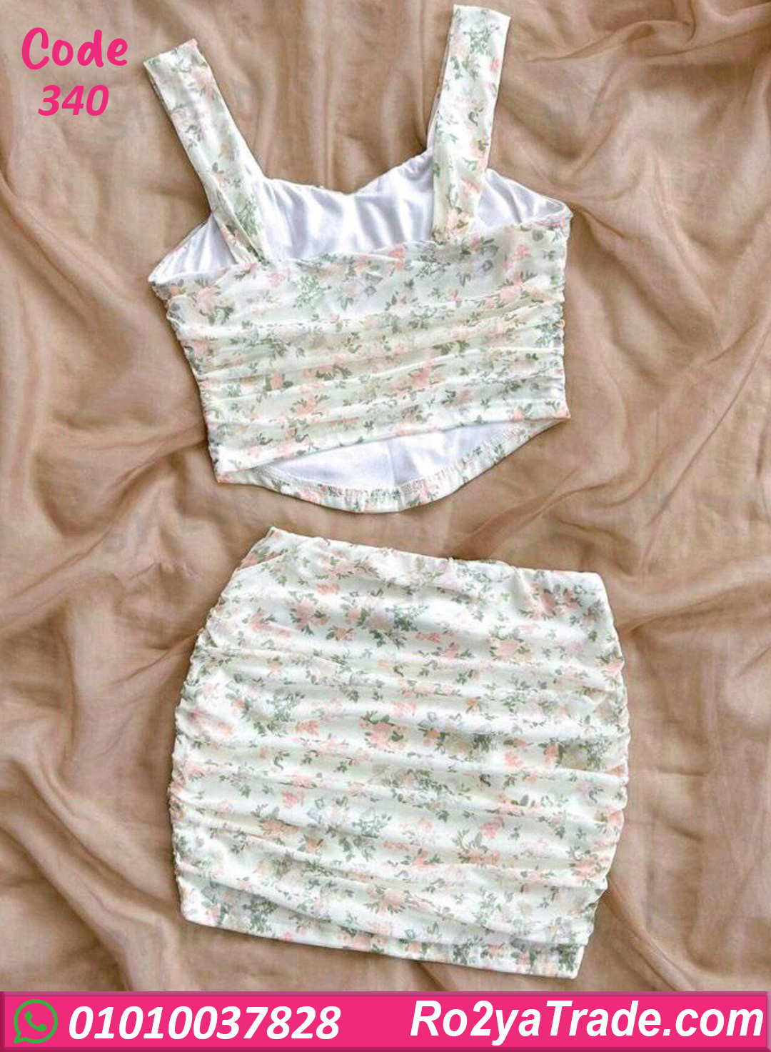 مكوّن من توب بحمالات عريضة وجيبة ميني بقصة بتبرز القوام بشكل جذاب. الخامة خفيفة ومرنة ومريحة في اللبس، والنقشة الورد بتدي إحساس صيفي رقيق وشيك.