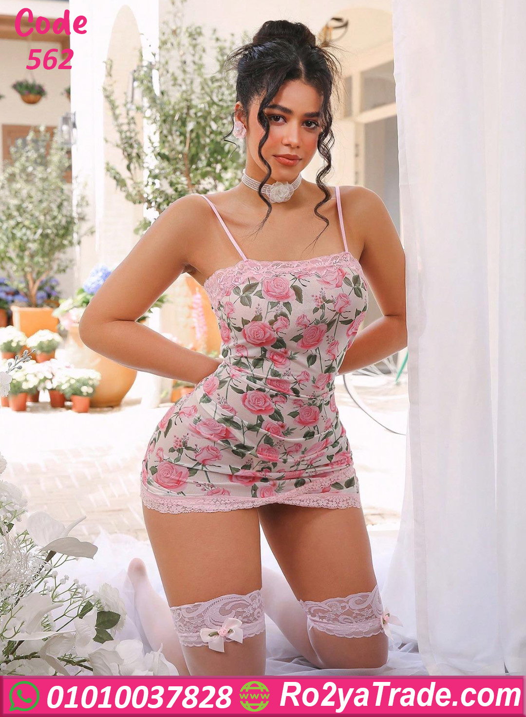 لانجري وردي مزخرف بالورود – كود 562 من ماركة Lady In Red بتصميم رومانسي أنيق يجمع بين النعومة والجاذبية.