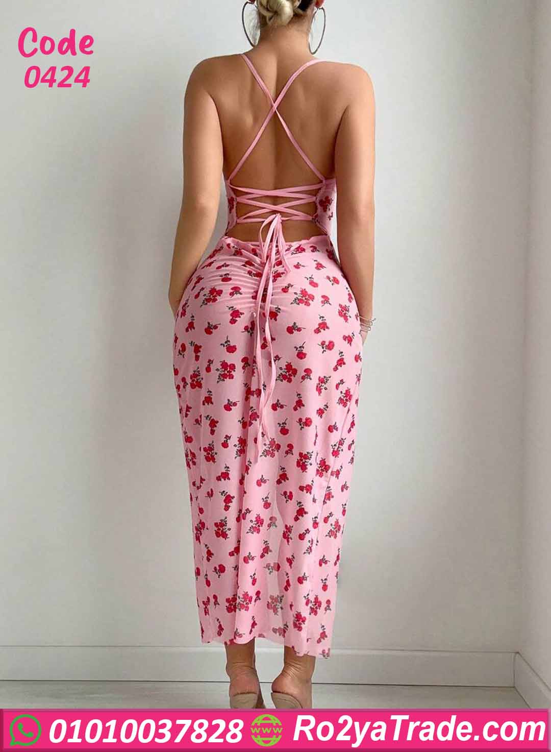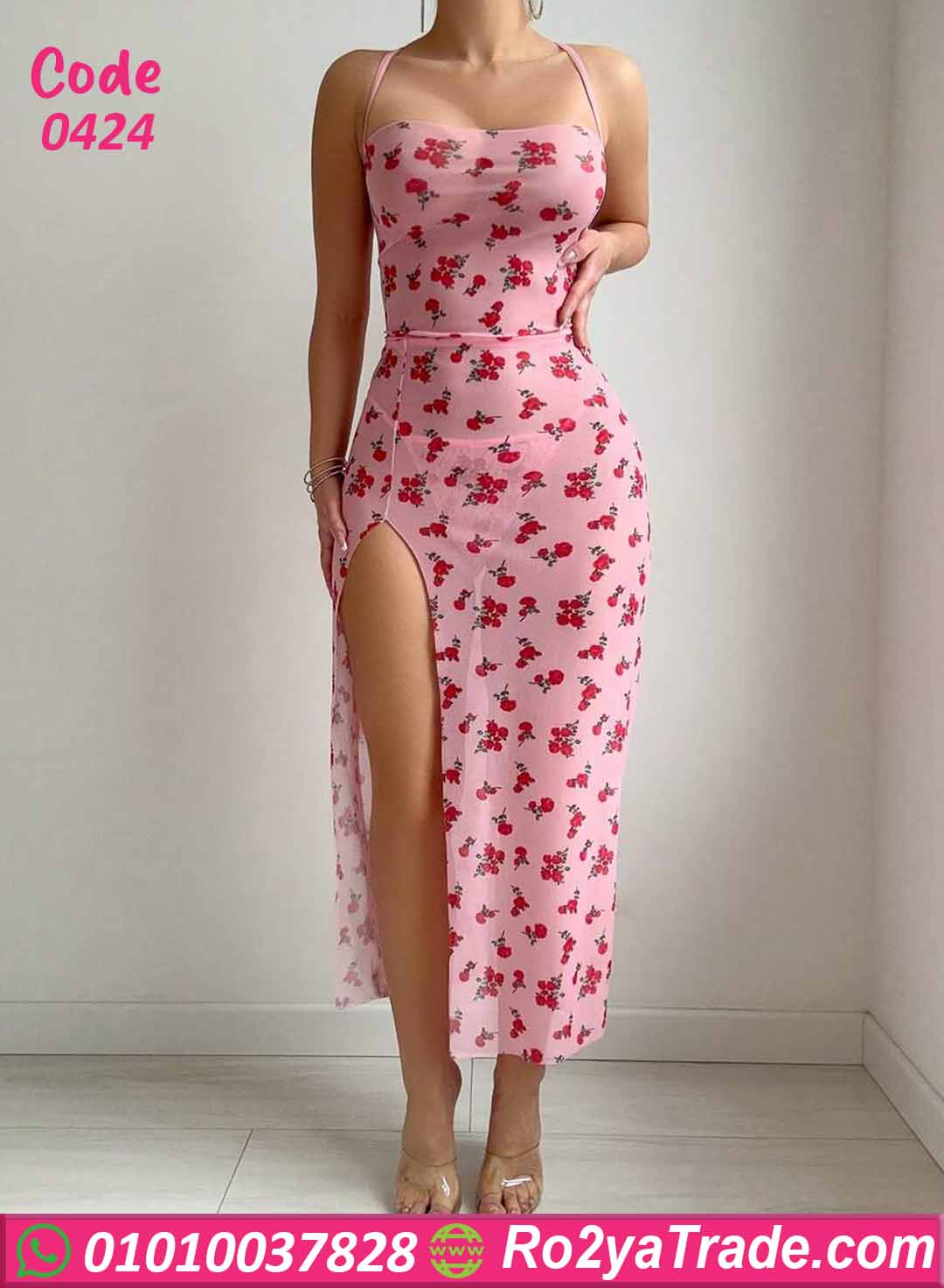 لانجري حريمي طويل بتصميم أنثوي جذاب بطبعة ورود رقيقة مع قصة أنيقة وفتحة جانبية تضيف لمسة جريئة لإطلالتك.